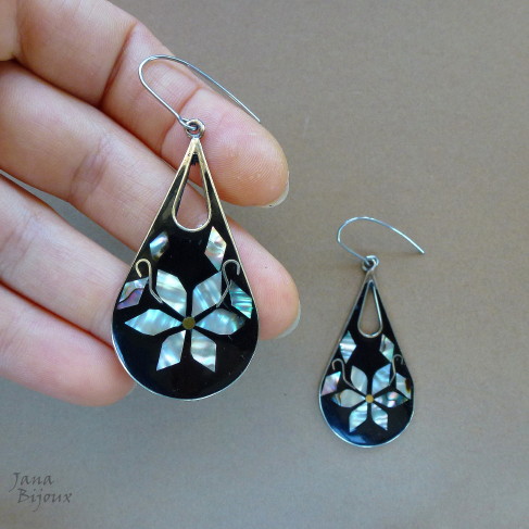 Brincos de alpaca com fecho de aço inox hipoalérgico, abalone.