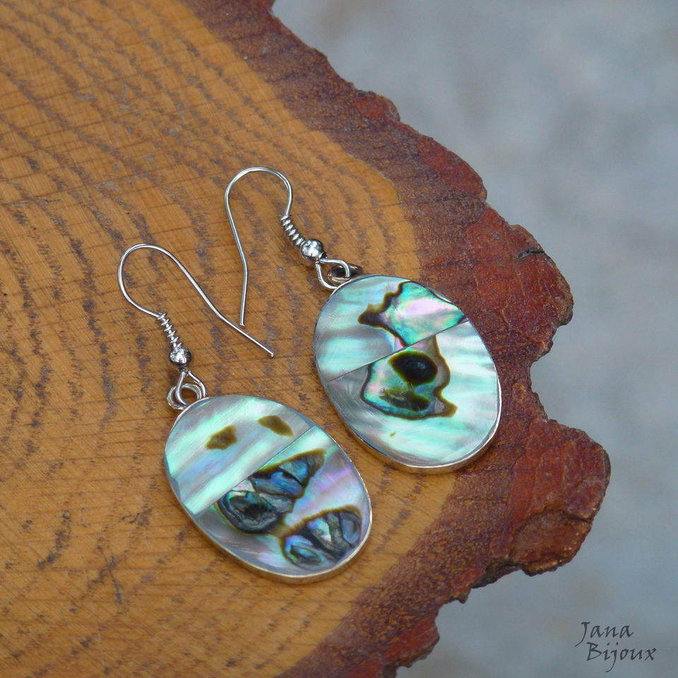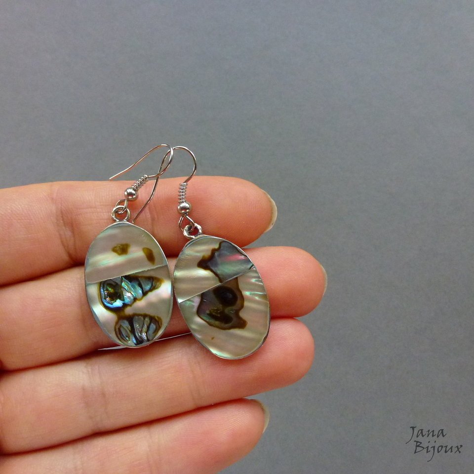 Aç346 20/04/2017VENDIDOS ( Prodáno)Jana Bijoux Brincos compridos 4,5 cm de alpaca com fecho de aço inox, abalone R$ 26,00.