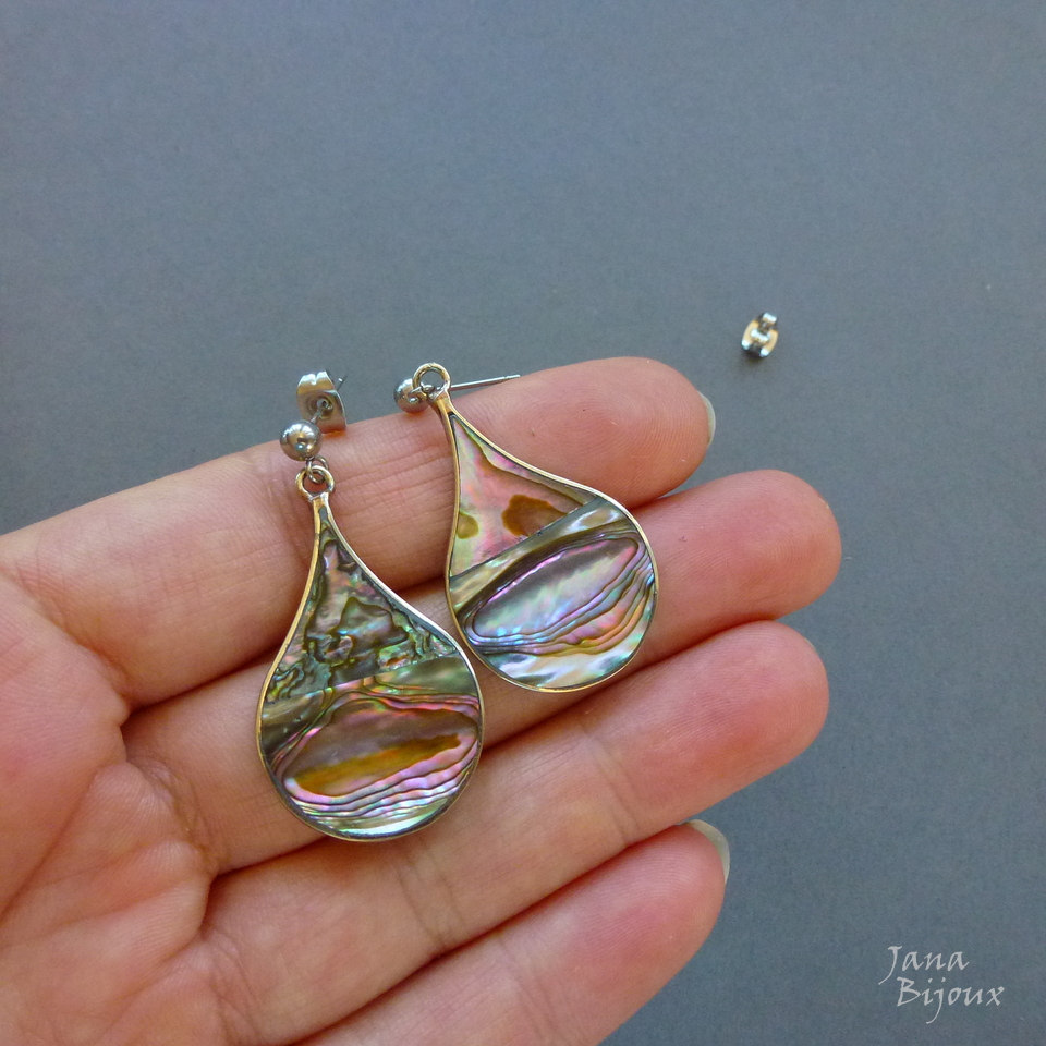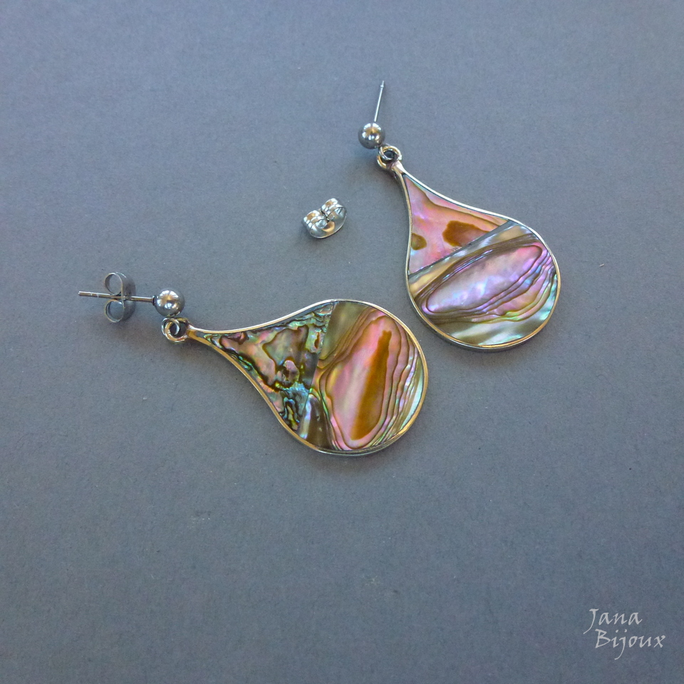 Aç355 28/04/2017VENDIDOS ( Prodáno)Jana Bijoux Brincos compridos 3,8 cm de alpaca com tarracha de aço inox e abalone com lindos tons rosa e roxo que vai até azul.. difícil de se fotografar R$ 28,00.