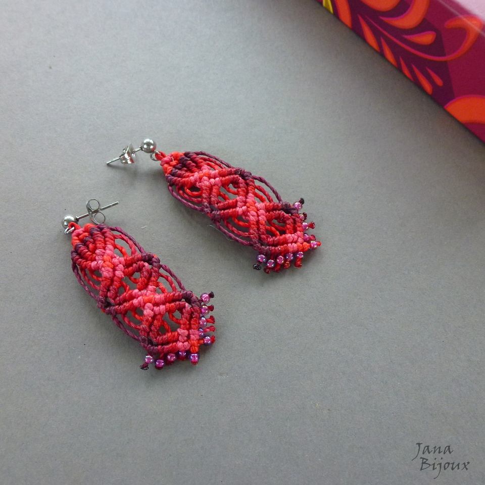 Brincos de macramé 5 cm por 1,6 cm, super leves, alegres..  com fecho de aço inox R$ 19,90