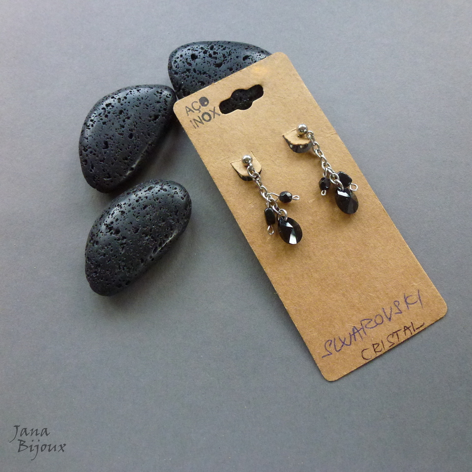 Brincos delicados de 3,4 cm, super leves, todo feito de aço inox e com cristais SWAROVSKI - preto. R$ 26,00