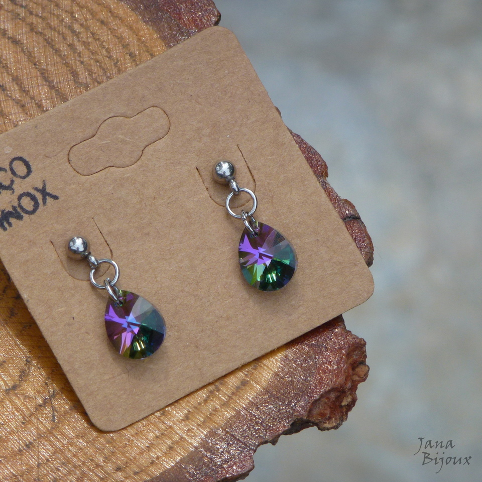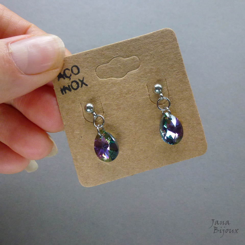 Brincos leves, com aço inox, moderno, com lindas gotas CRYSTAL PARADISE SHINE de Swarovski cristais..12 mm. ( alto brilho furta-cor)