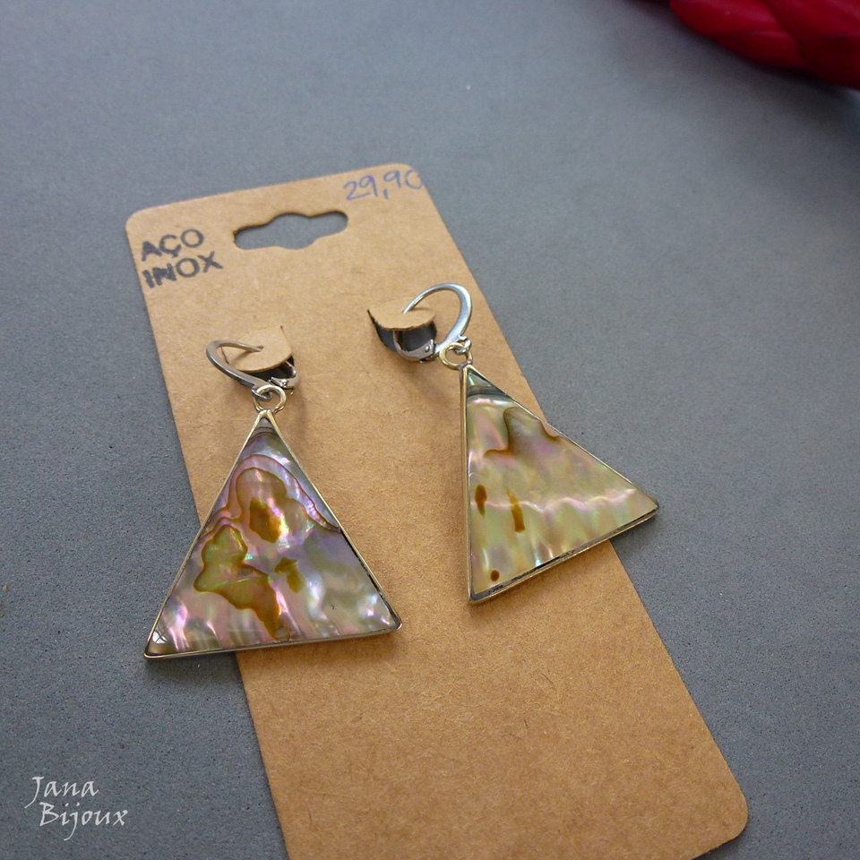 Aç441 05/12/2018VENDIDOS ( Prodáno)Jana Bijoux Abalone menor, super peça única… Brincos compridos 4 cm de alpaca com fecho de aço inox, formato argola e abalone. R$29,90