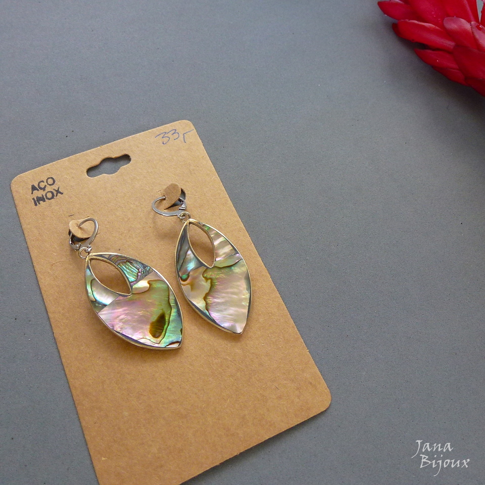 Aç442 05/12/2018VENDIDOS ( Prodáno)Jana Bijoux Abalone maior, brincos compridos 6 cm de alpaca com fecho de aço inox, formato argola e abalone. R$ 33,00