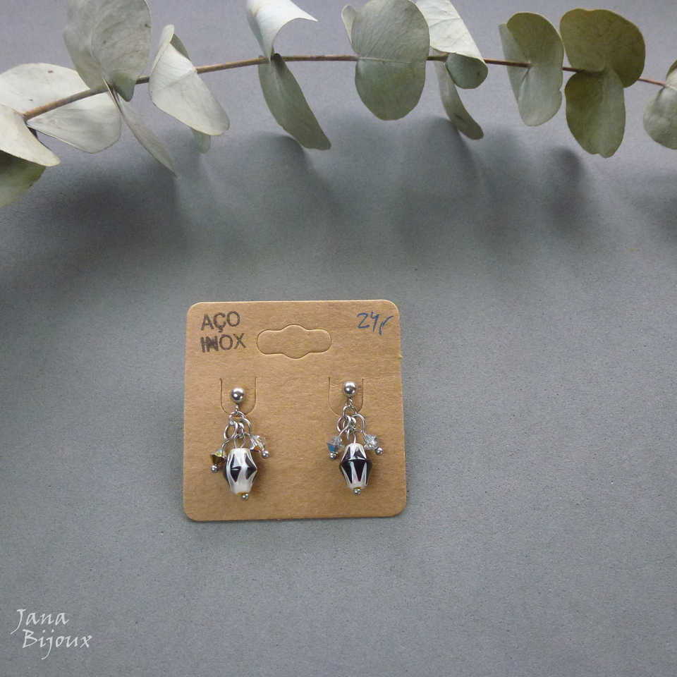 Brincos de aço inox delicados, super leves, com millefiori, cristais PRECIOSA furta cor, comprimento 2,4 cm R$ 24,00