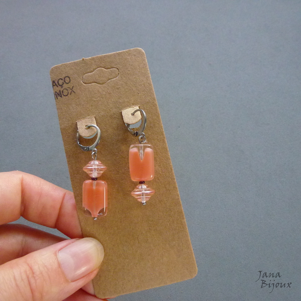 Aç528 28/02/2022VENDIDOS ( Prodáno)Jana Bijoux Brincos de aço inox, fecho em formato de argola e vidro importado, invertido, assimétrico ;-). Comprimento médio, 4 cm R$ 22,00