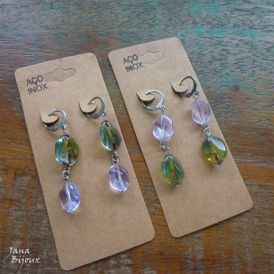 Aç547 17/09/2022VENDIDOS ( Prodáno)Jana Bijoux Brincos de aço inox com vidro, fecho de argola, comprimento 5,3 cm qualquer um. R$ 25,00