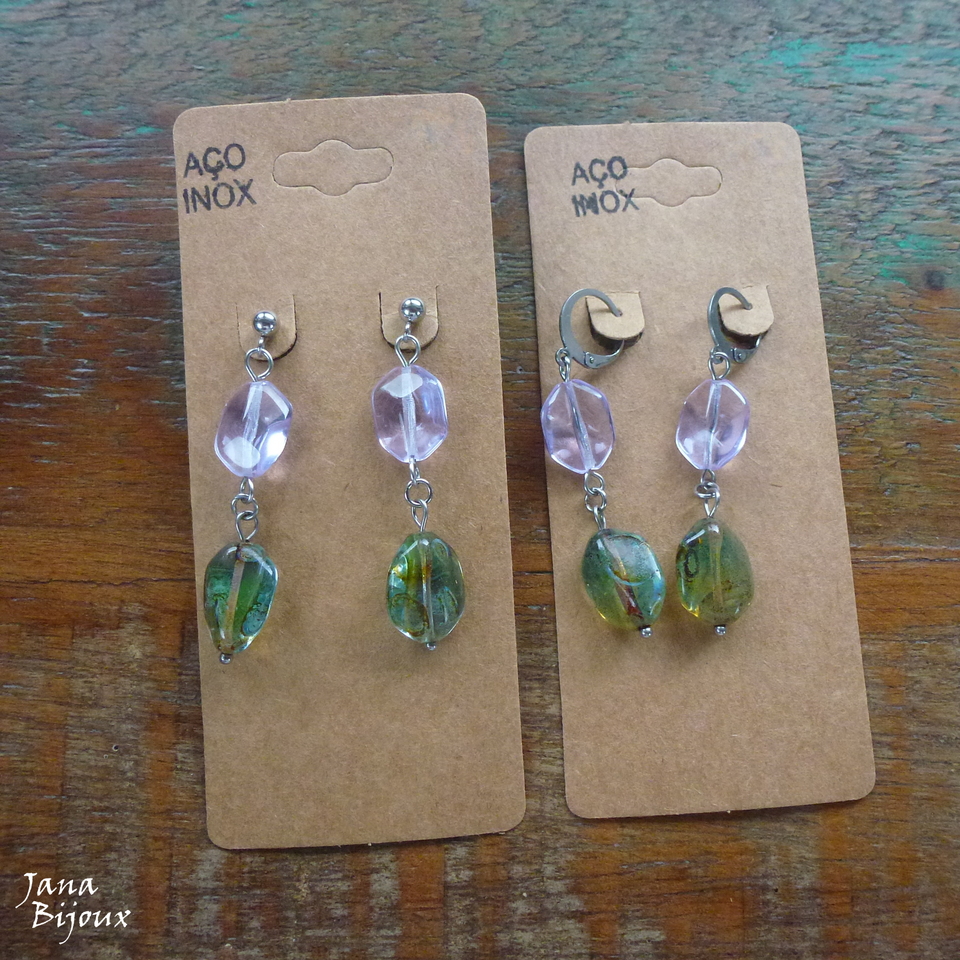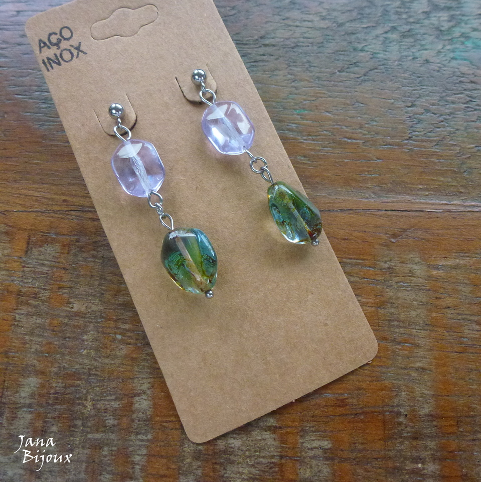Brincos de aço inox com vidro, fecho de tarraxa, comprimento 4,8 cm R$ 22,00