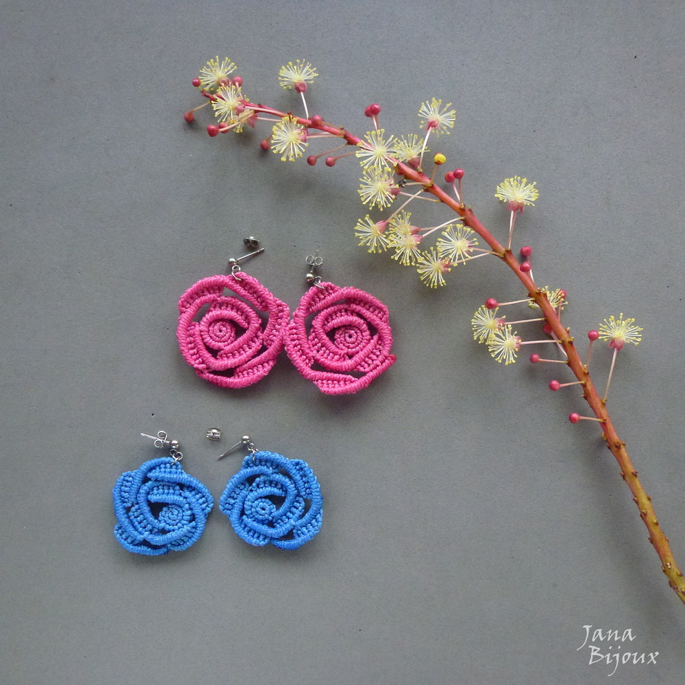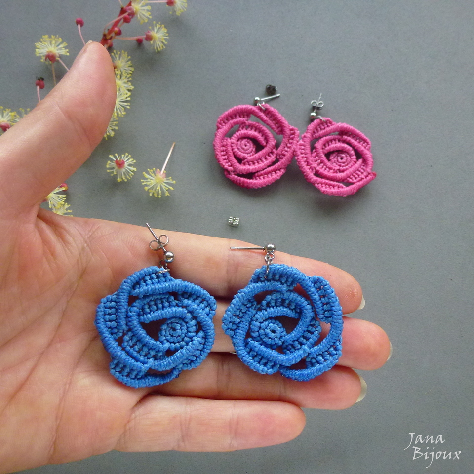 Brincos em formatos de rosas, todo vazado, extremamente trabalhosos, do jeito como eu gosto de me castigar kkk.