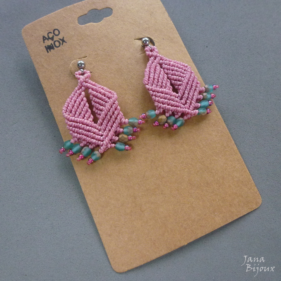 Aç585 14/12/2022VENDIDOS ( Prodáno)Jana Bijoux Brincos de macramé, comprimento 4,5cm com fecho de inox, cristais foscos nas franjas. R$ 29,90