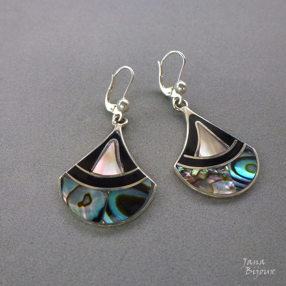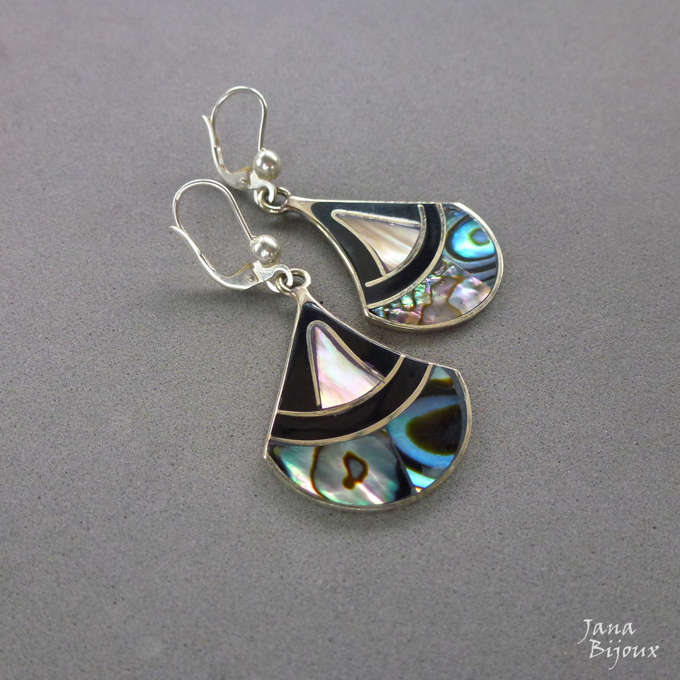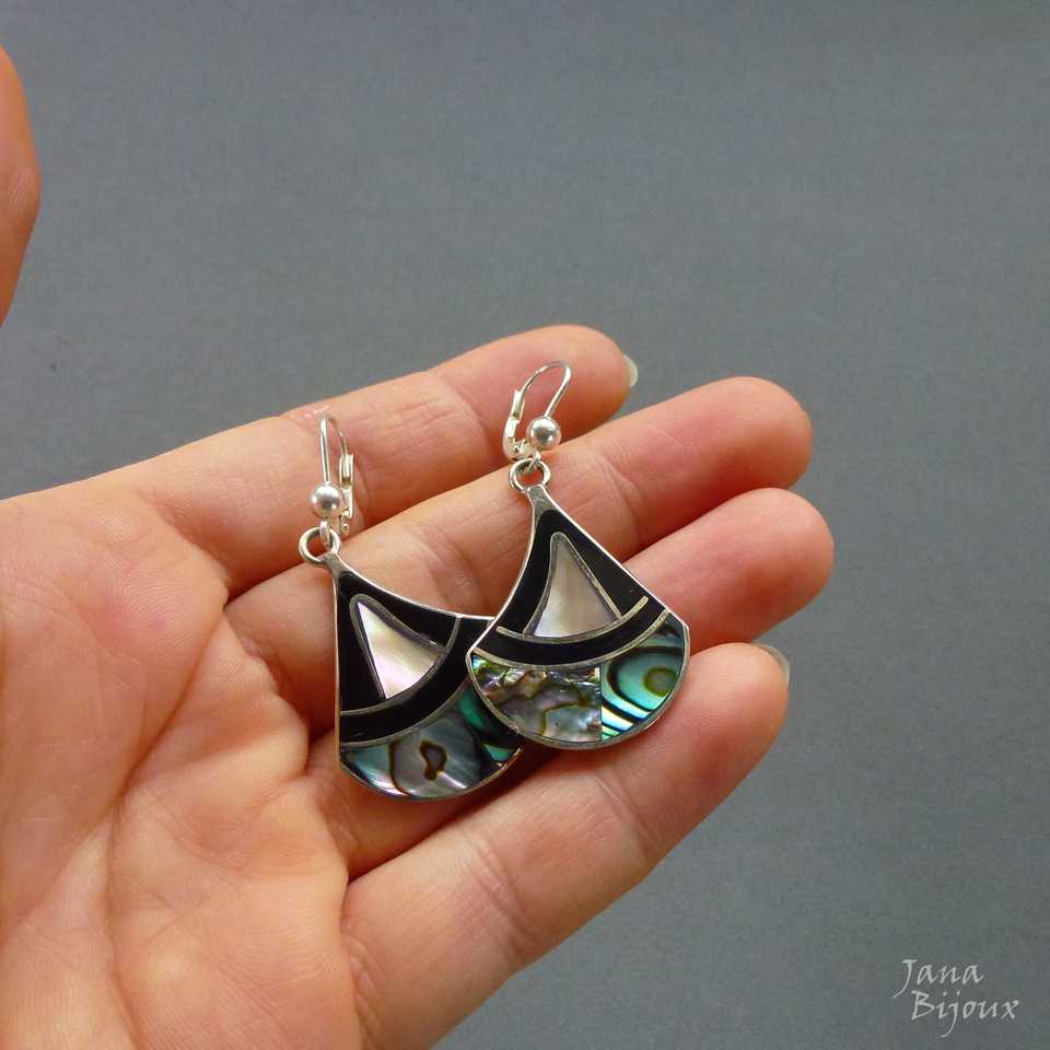 Brincos de abalone, alpaca e com fecho de prata 925, comprimento 5,1 cm R$ 46,00