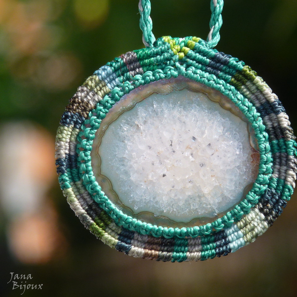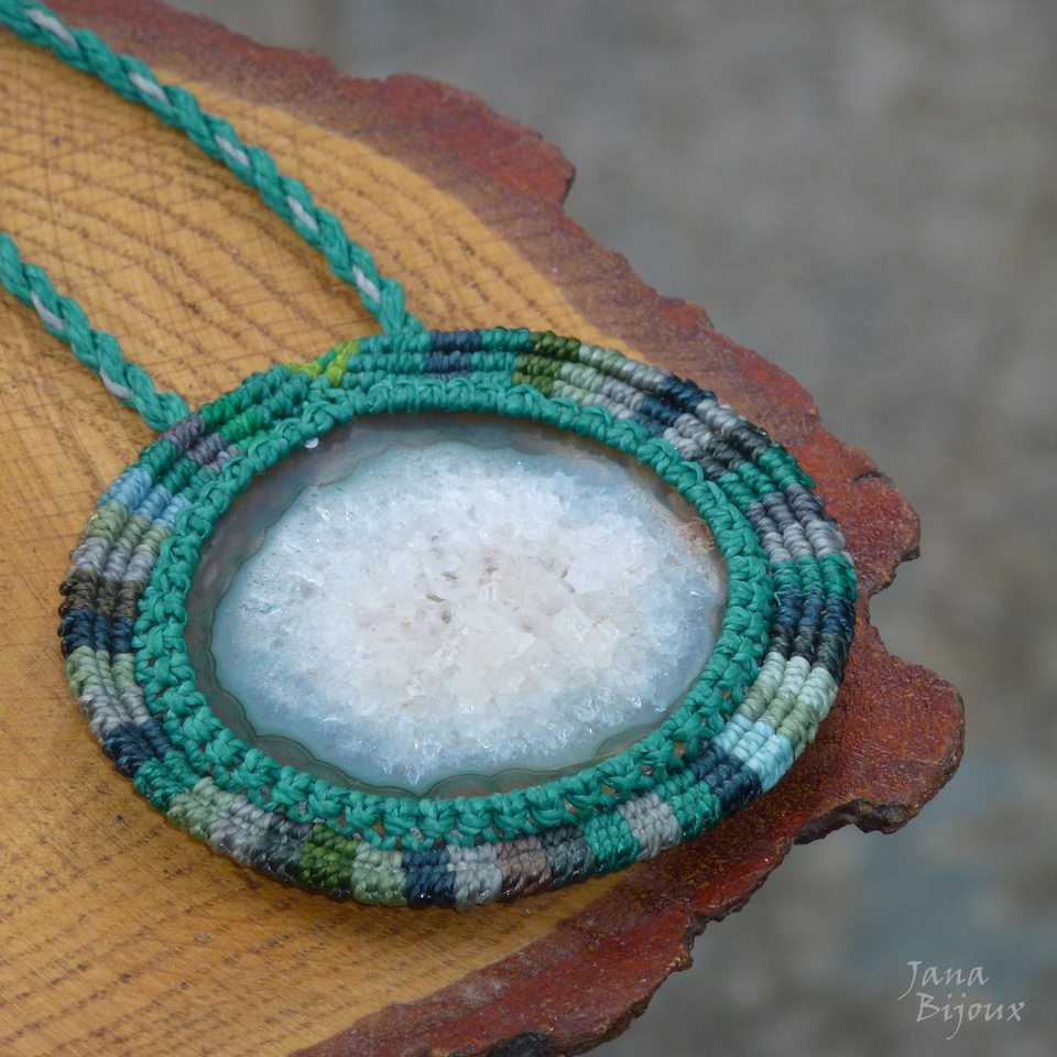 p160 Agata .. Melissa 17/05/2015VENDIDOS ( Prodáno)Jana Bijoux Colar com comprimento ajustável feito para presentear.. A pedra tem 5 cm por 4,5 cm, o pingente interio com macramé mede 6,2 cm por 6,8cm.