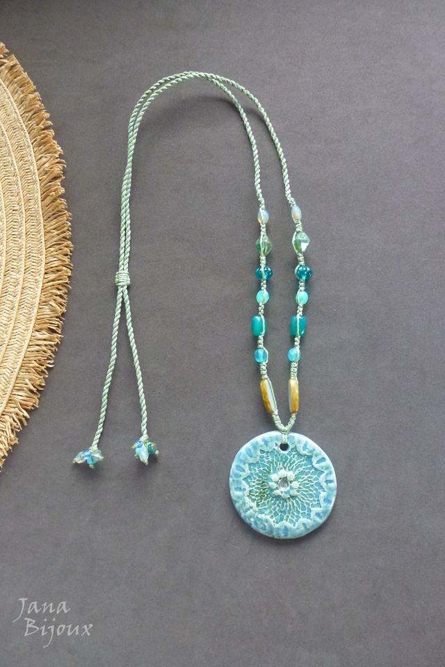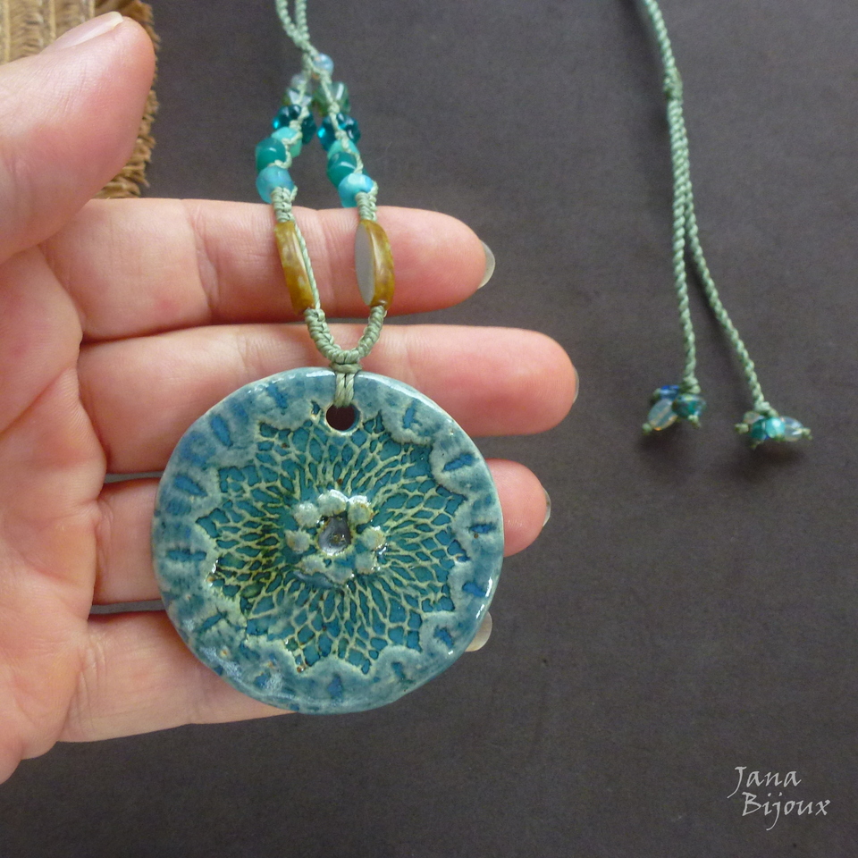 Colar com turquesa mais escura e cerâmica de alta temperatura.