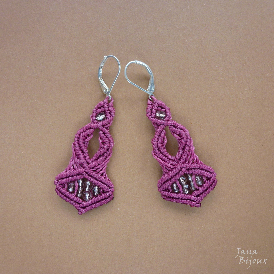 Brincos compridos  6,4 cm, super leves,  de macramé,  com fecho banhado à prata e cristais R$ 18,00