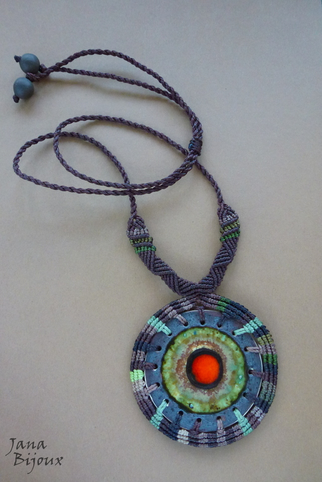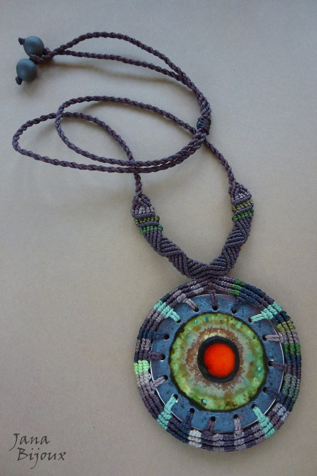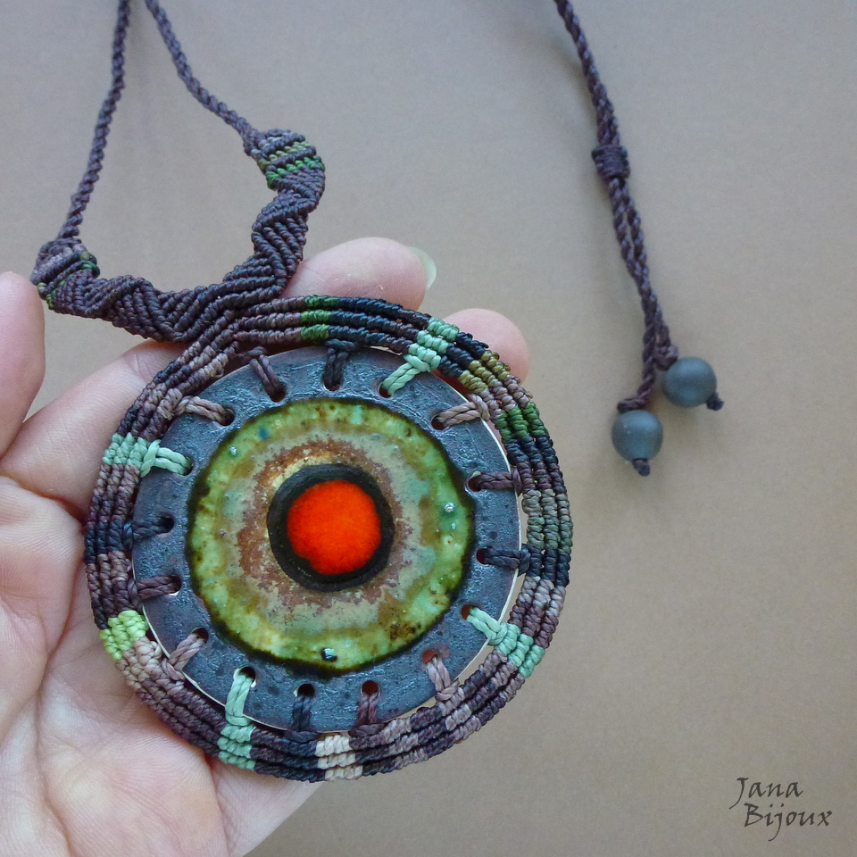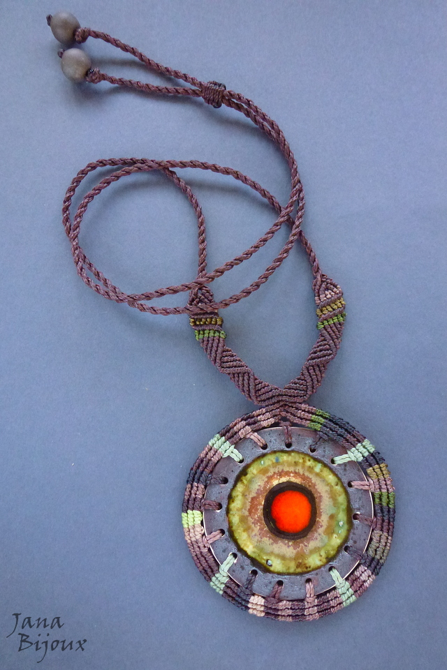 Colar com comprimento regulável, macramé e cerâmica feita a mão de cerâmica no ateliê da grande Janete Dallabona … sem metal.