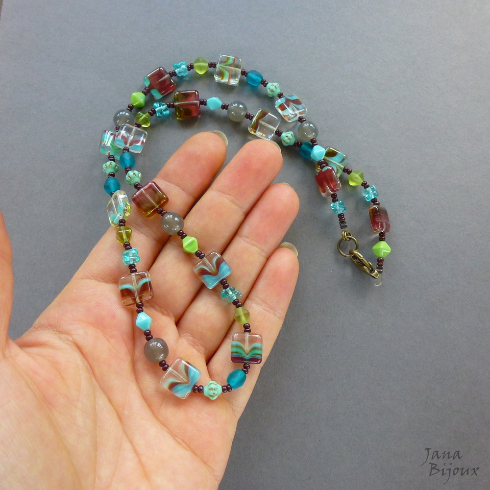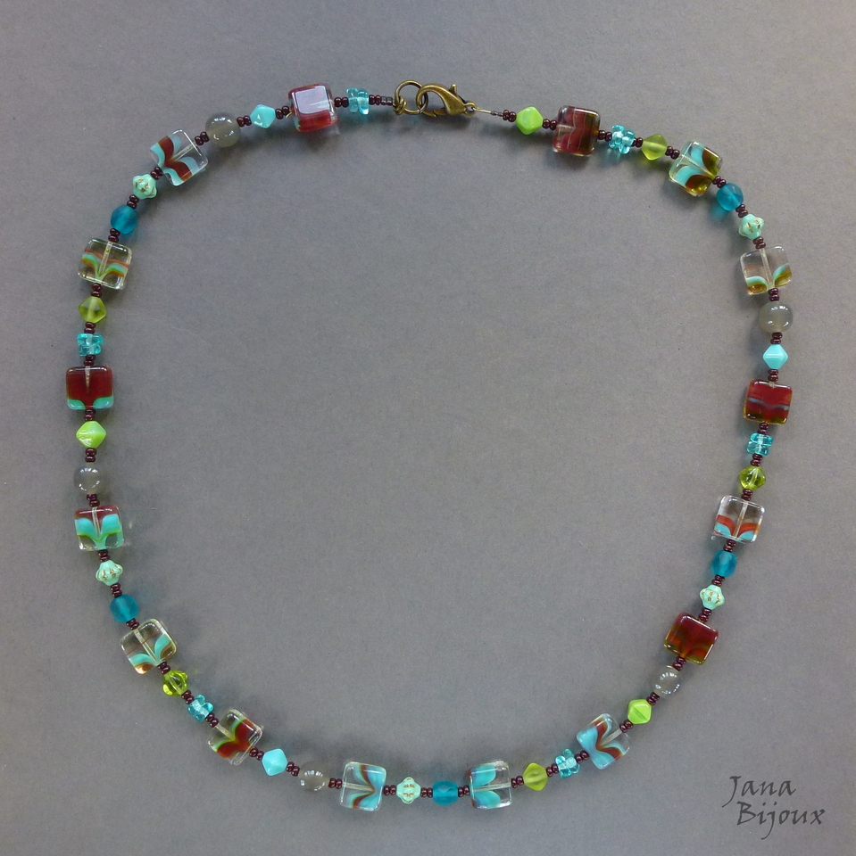 Colar curto 51,5 cm, com lindo vidro colorido, importado..