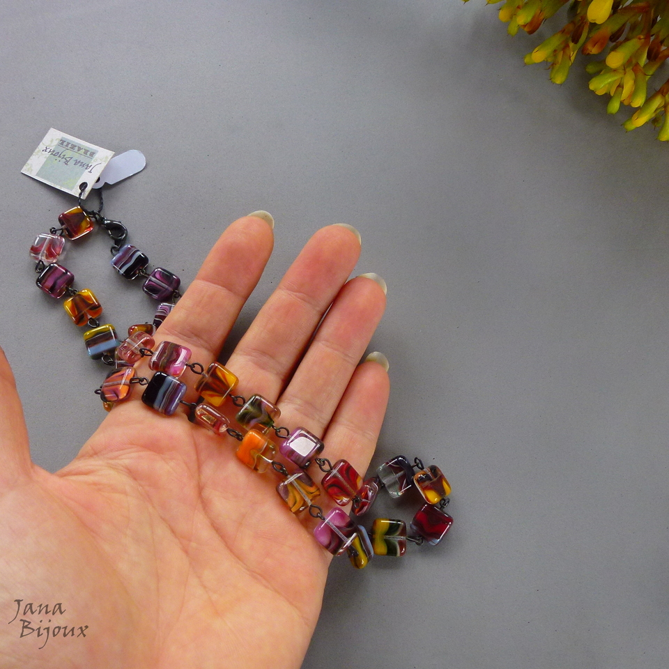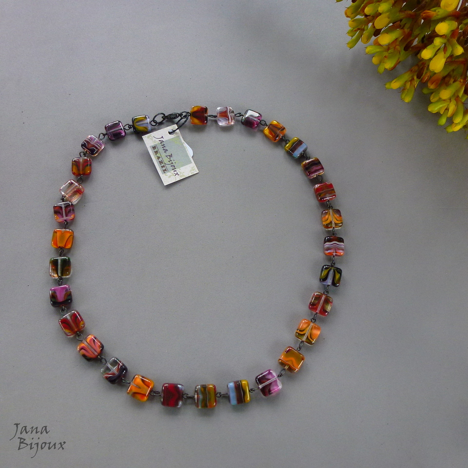 Colar curto 48,5 cm de vidro importado, o acabamento preto. Possível com brincos daqui. R$ 39,00 (preço pelo colar, sem brincos)