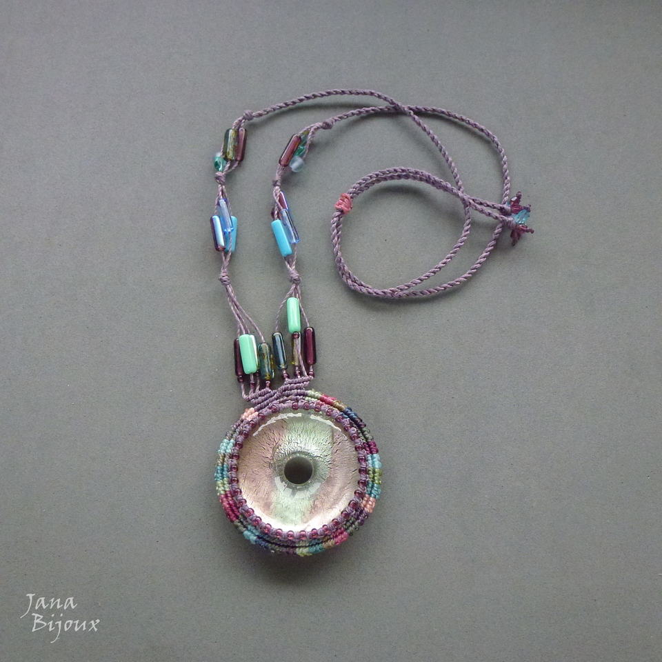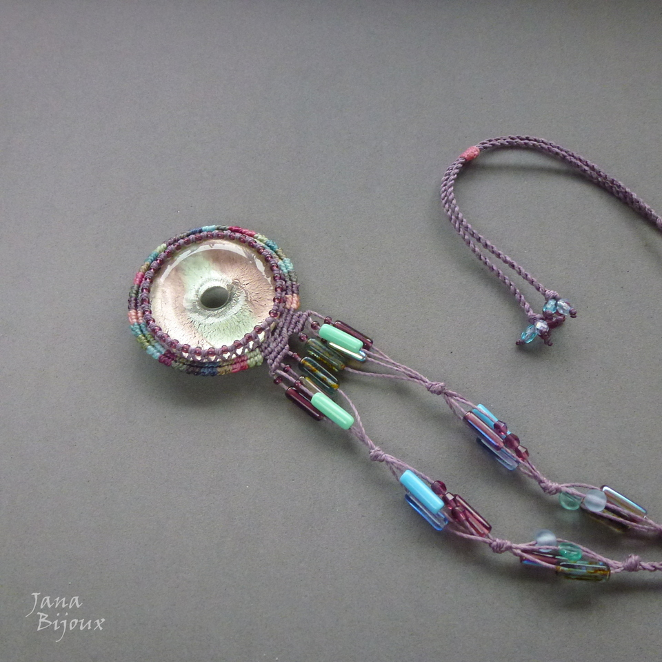 Pingente mede 4,7 cm, com macramé 5,6 cm… em volta do dunut miçangas.