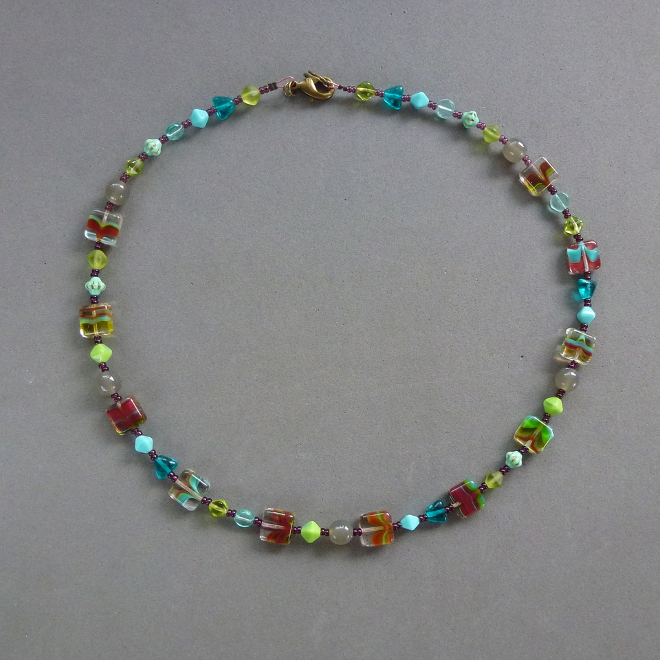 Colar curto 49 cm com sequencia de vidro lindo, importado de encher os olhos de vidro importado em cores azuis, verde em diversos formatos e na cor beringela. Micro miçangas no meio dos vidros, acabamento opcional em aço inox por R$ 49,90 VENDIDO ou ouro velho DISPONIVEL por R$ 45,00