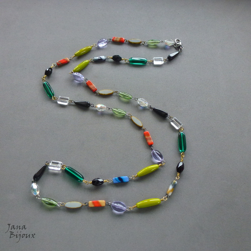 Colar comprido 104 cm, com peças de vidro maior, tudo importado e mix de metais (latão = dourado, aço inxo = prata, zinco preto = preto e ouro velho), o fecho maior 1,5 cm para look mais luxuoso e manuseio mais fácil. Colar pode ser usado tmb como colar curto de 2 voltas. R$ 58,00
