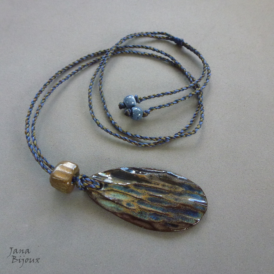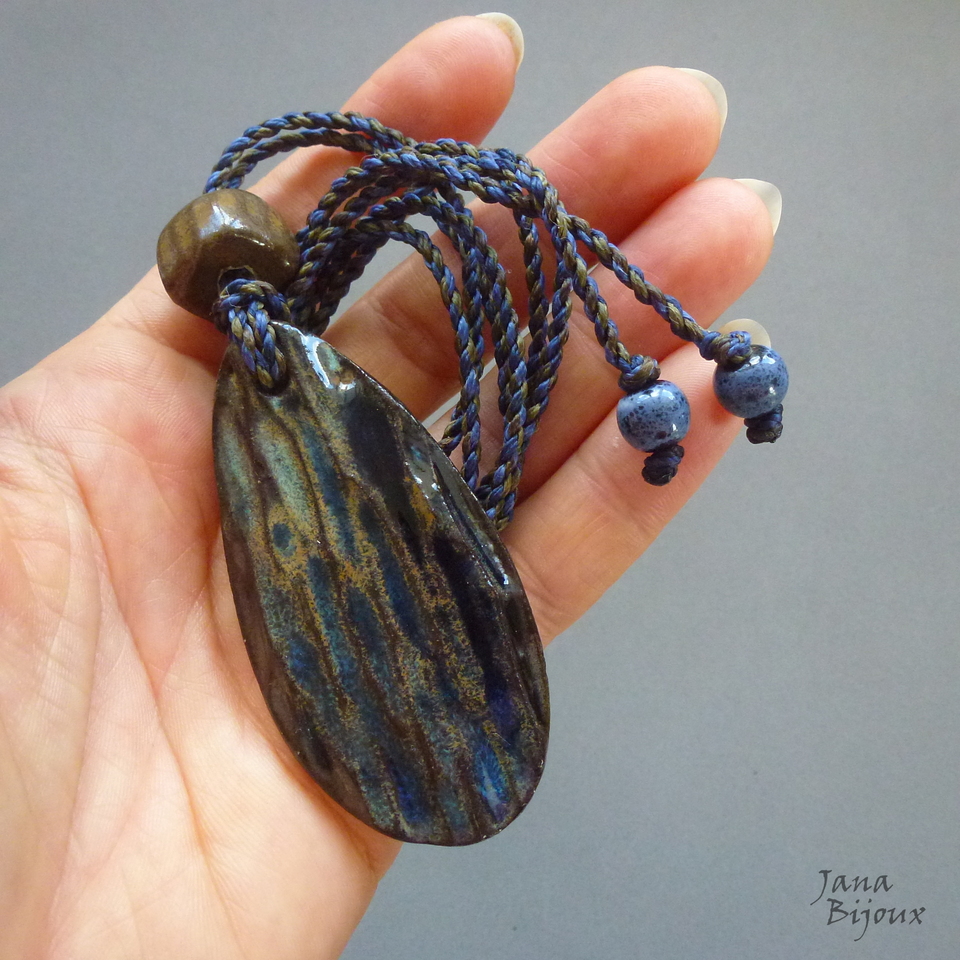 Colar simples, porém todo artesanal. Cerâmica feita a mão 6,5 cm pela @luciane_schwartz, cordão feito a mão 98 cm, torcido de 2 tons de marinho e 2 tons de militar combinando perfeitamente com a cerâmica. Nas pontas cerâmica tmb, comprimento ajustável, pode ser usado curto, médio ou comprido.