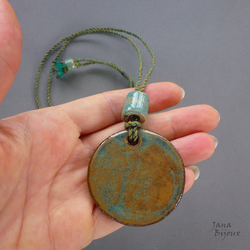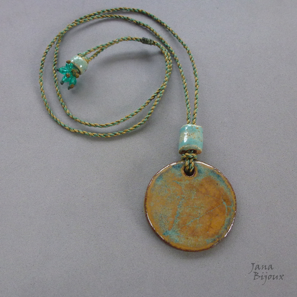 Colar simples, porém todo artesanal. Cerâmica feita a mão 4,5 cm pela @luciane_schwarz, cordão feito a mão 80 cm, torcido de 2 tons que combinam perfeitamente com a cerâmica. Nas pontas cerâmica tmb e vidro, comprimento ajustável, pode ser usado curto, médio ou comprido.