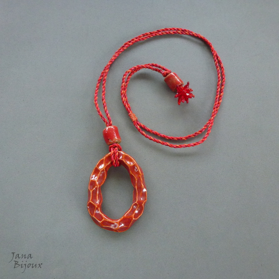 Colar simples, porém todo artesanal. Com um oval de porcelana no meio feita a mão 6,5 cm pela @luciane_schwarz, cordão feito a mão 92 cm, torcido de 6 tons de vermelhos e rosa pink. Em cima da peça central cerâmica e a mesma cerâmica tmb na ponta juntamente com vidros. Comprimento ajustável, pode ser usado curto, médio ou comprido.