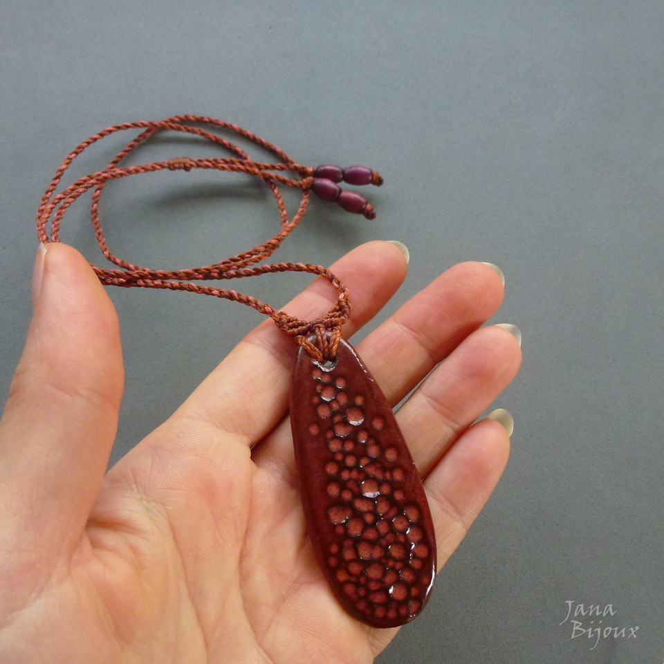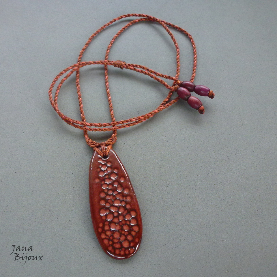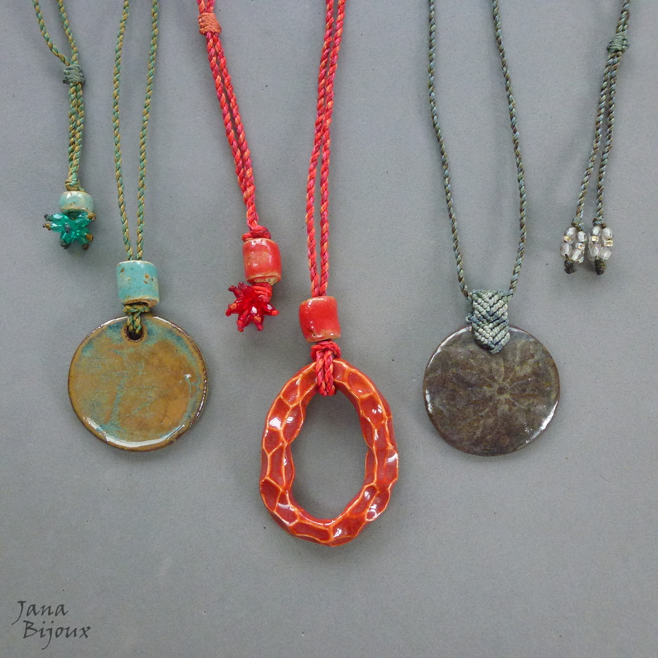 Colar simples, porém todo artesanal. Cerâmica feita a mão 7,3 cm pela @luciane_schwarz,  cordão feito a mão 91 cm, torcido de 3 tons que combinam perfeitamente com a cerâmica.  Nas pontas cerâmica tmb e vidro, comprimento ajustável, pode ser usado curto, médio ou comprido.