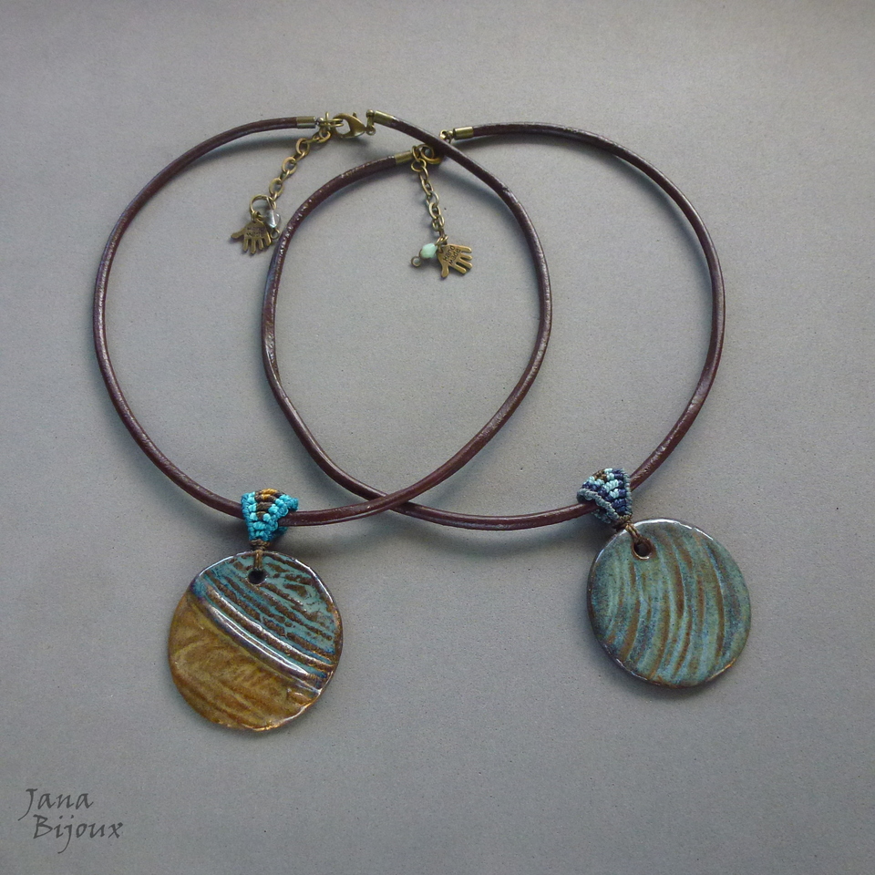Colares de couro curtos 44 cm com cerâmica da @luciane_schwarz com macrame nas alças. Corrente para prolongar + 5 cm com pingentes nas pontas , componentes ouro velho, fecho maior 1,5 cm para look mais luxuoso e manuseio mais fácil. R$ 34,00
