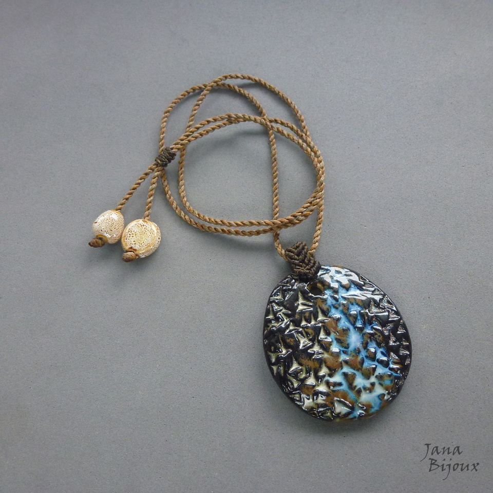 Colar simples, porém artesanal. Cerâmica feita a mão 5 x 5,6 cm pela @luciane_schwarz,   alça de macrame , pingente todo tem 6,7 cm . O cordão de cores mais claras para dar leveza na cerâmica, é um pouco mais curto = tem 72 cm.  Nas pontas cerâmicas , comprimento ajustável, pode ser usado curto, médio ou comprido.