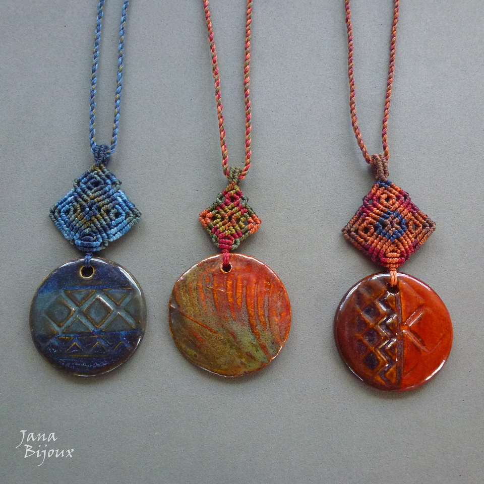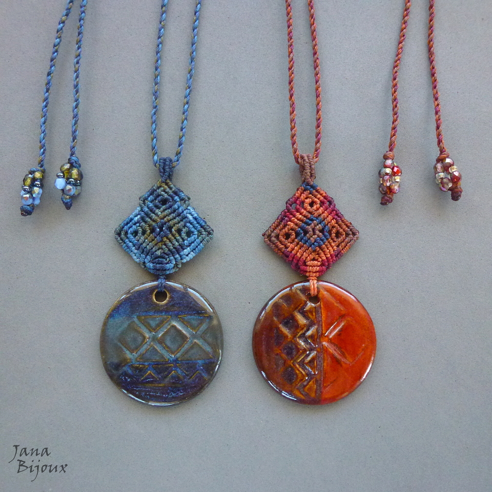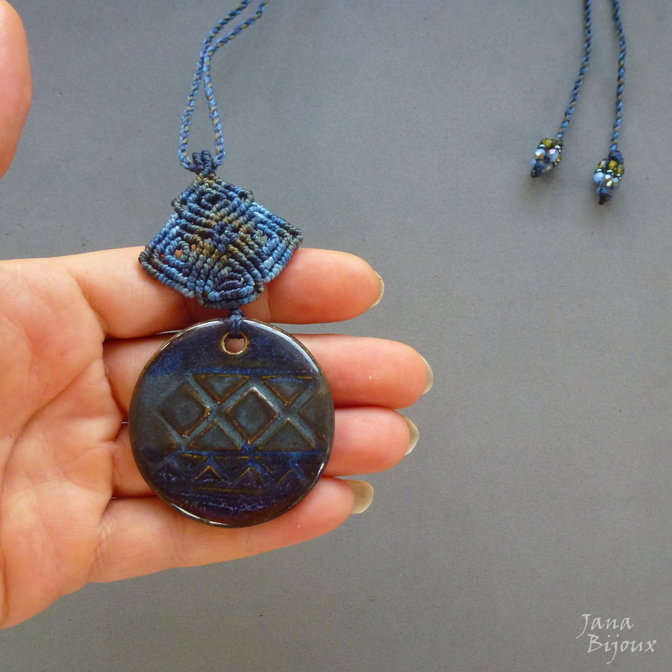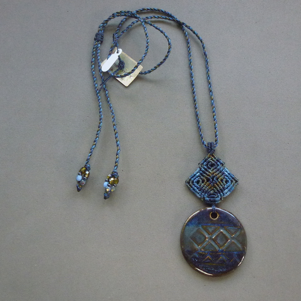 Cerâmica feita a mão pela @luciane_schwarz,  tem 4,5 cm,  com macrame em cima dela pingente mede 9 cm. A cerâmica tem movimento livre no cordão .