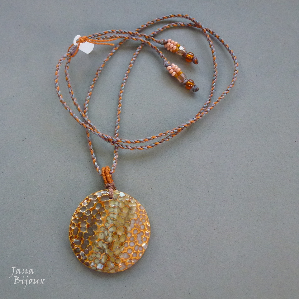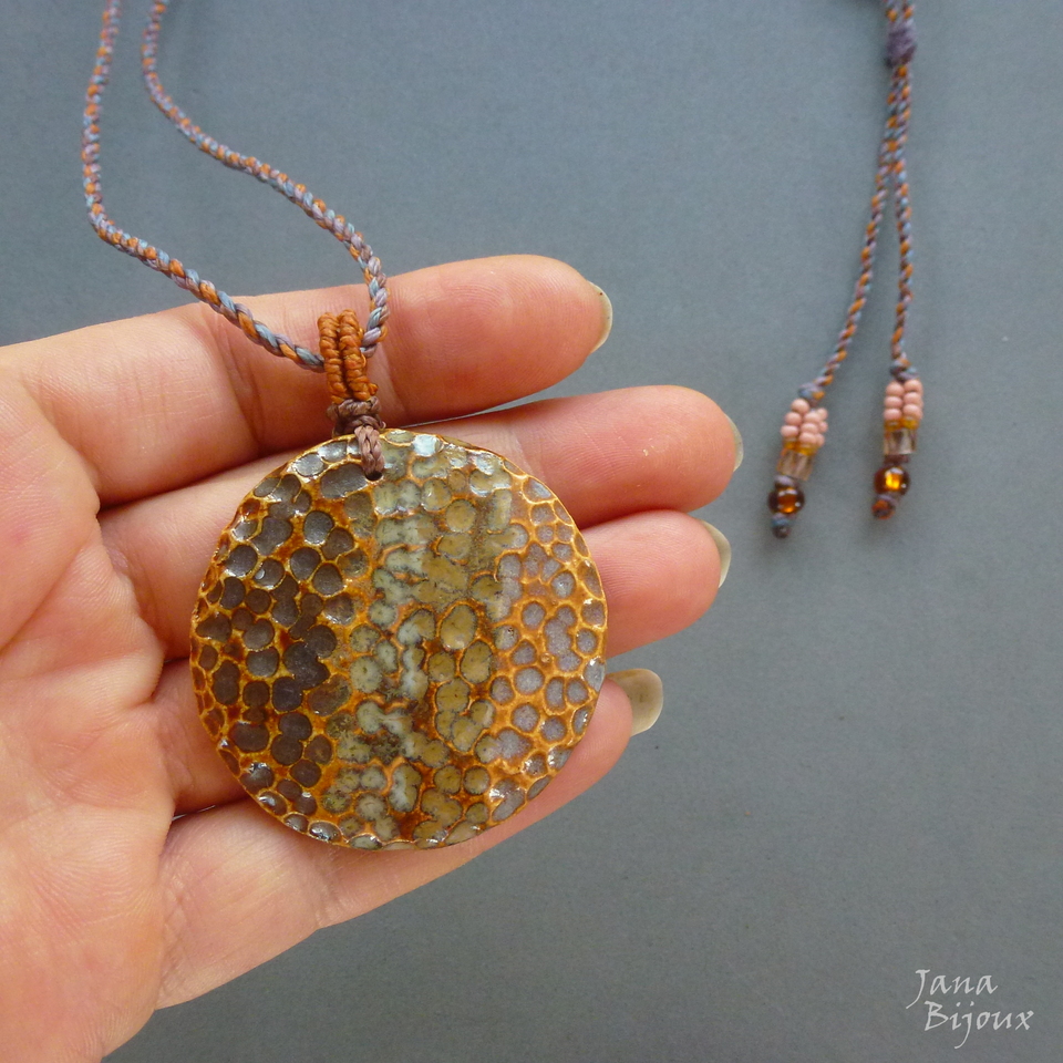 Colar simples, porém artesanal. Cerâmica de alta temperatura, feita a mão 4,5 cm pela @luciane_schwarz . O cordão feito a mão com 4 tons diferentes, nas pontas miçangas e vidro, comprimento ajustável, tem 86 cm, pode ser usado curto, médio ou comprido. Alça feita de macramé.
