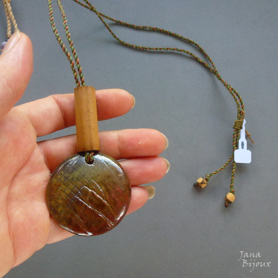 c1489 08/02/2021VENDIDOS ( Prodáno)Jana Bijoux Colar com bambu, sementes açaí e cerâmica de alta temperatura. Comprimento ajustável R$ 33,00