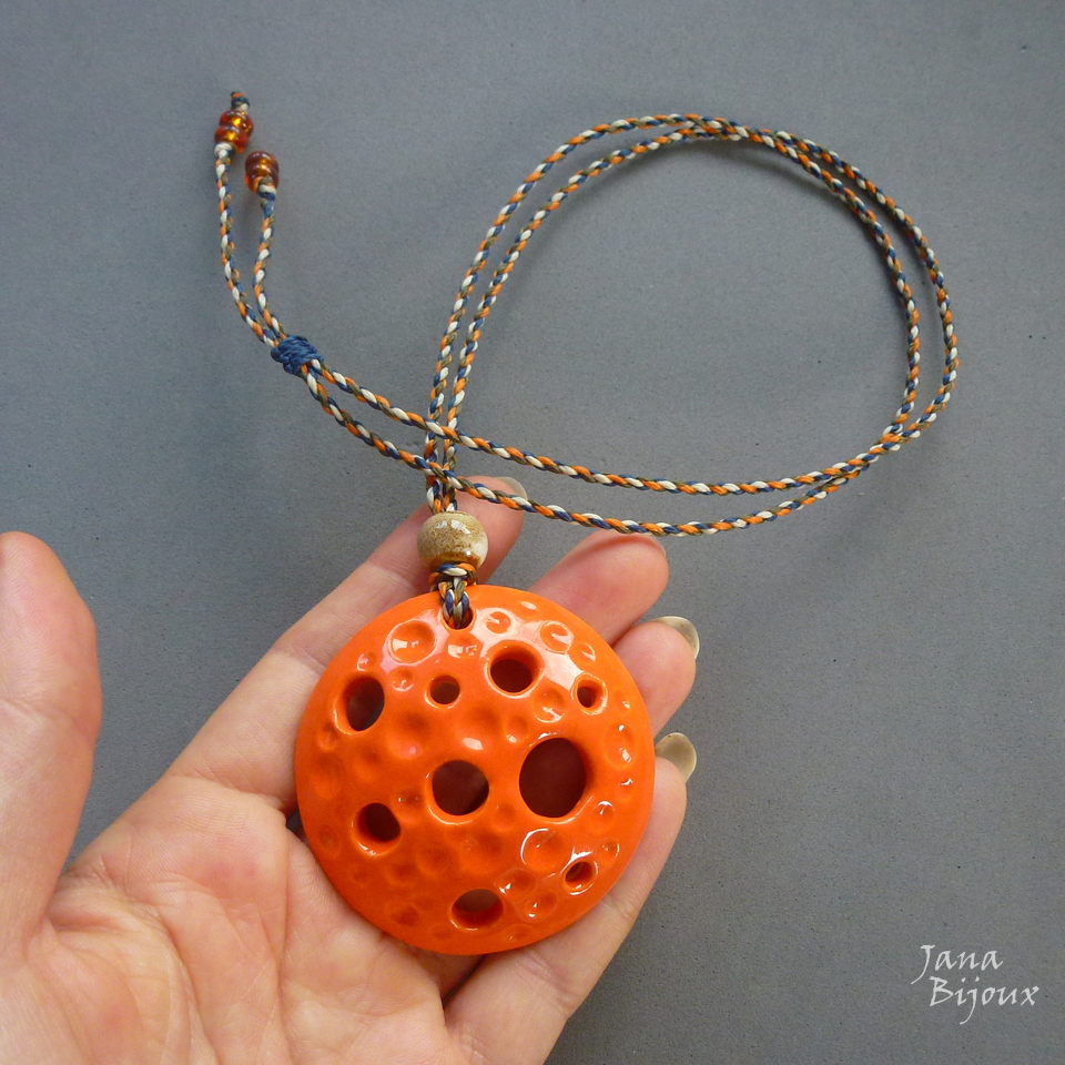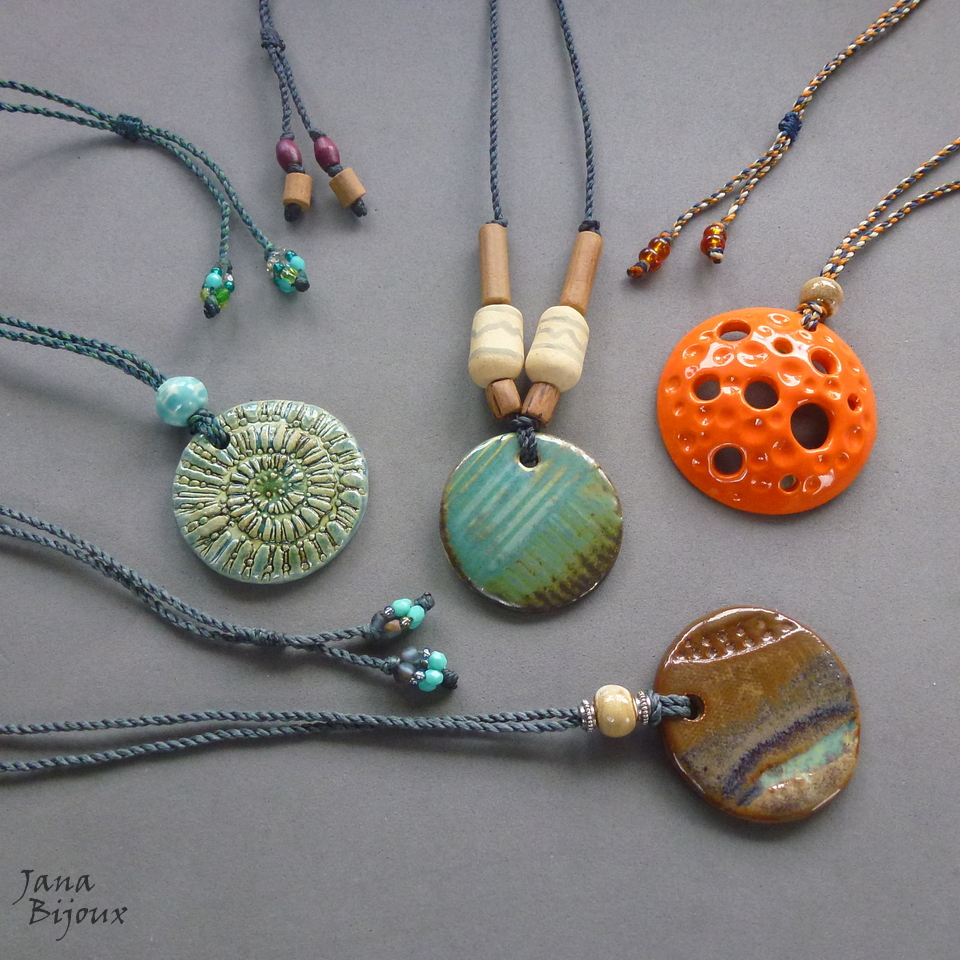 Colar simples, porém artesanal. Cerâmica de alta temperatura, feita a mão 6 cm pela @luciane_schwarz . O cordão feito a mão com 4 tons diferentes, nas pontas miçangas de vidro, comprimento ajustável, tem 81 cm, pode ser usado curto, médio ou comprido.