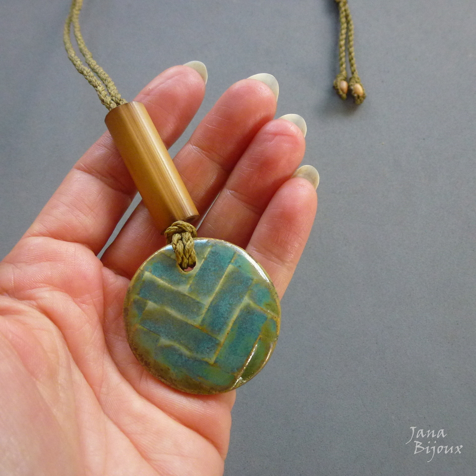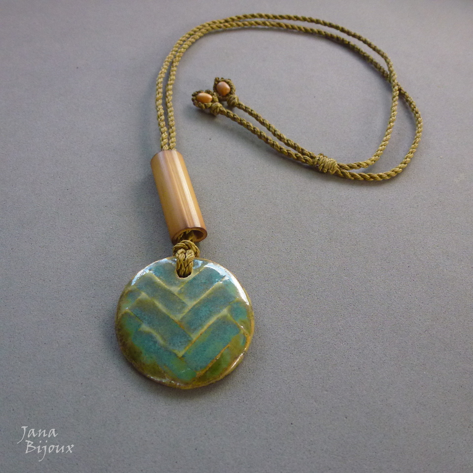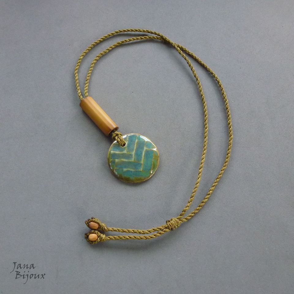 Cerâmica de alta temperatura, lindo desenho, feita a mão 4,1 cm pela @luciane_schwarz . O cordão é tmb trabalho manual, tom de fio combina perfeitamente com medalhão, máx. de comprimento 84 cm, bambu, nas pontas contas de madeira, pode ser usado curto, médio ou comprido.