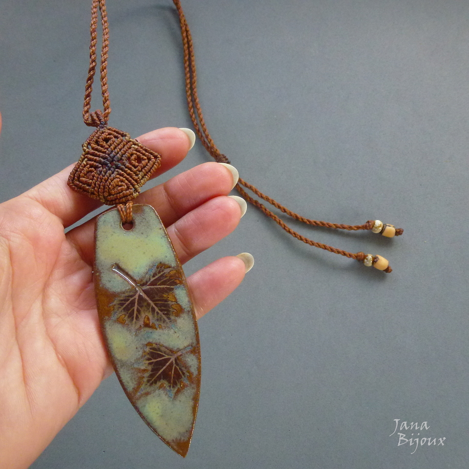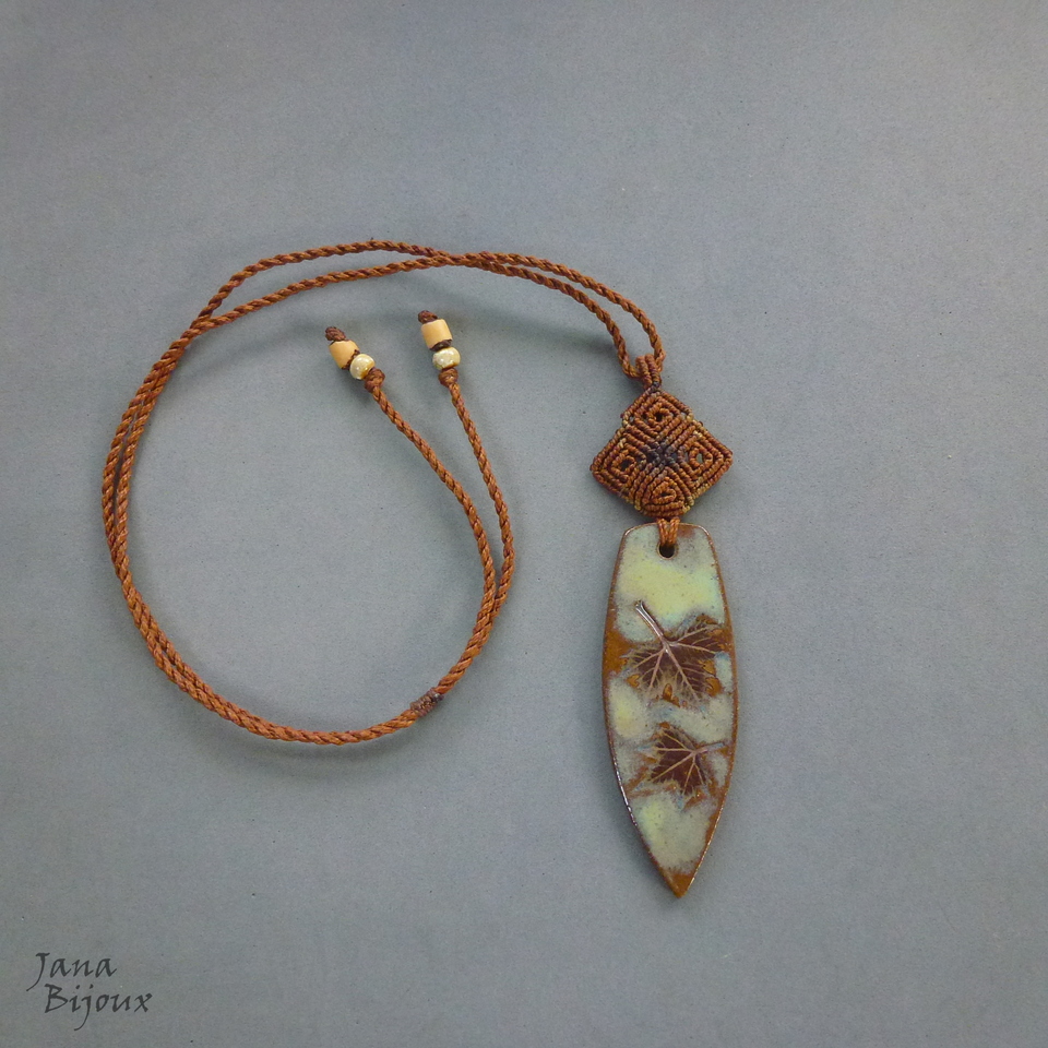 Colar com cerâmica e macramé em 4 tons.