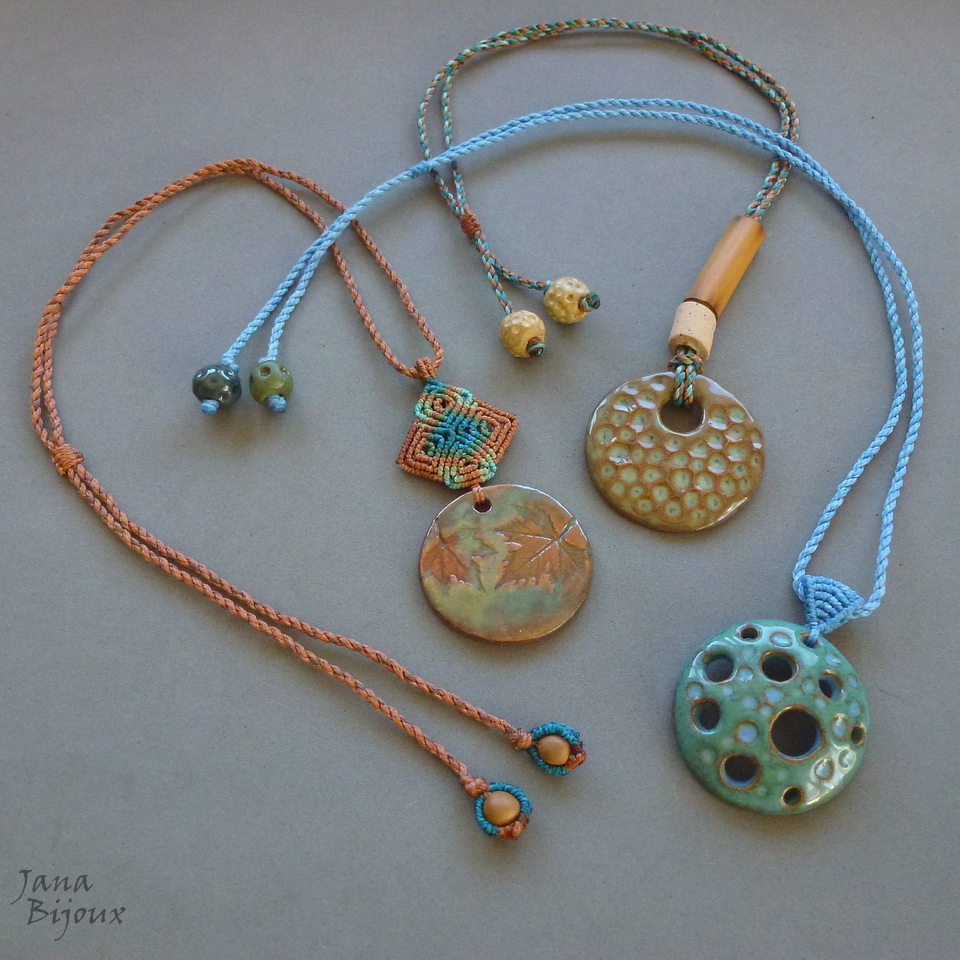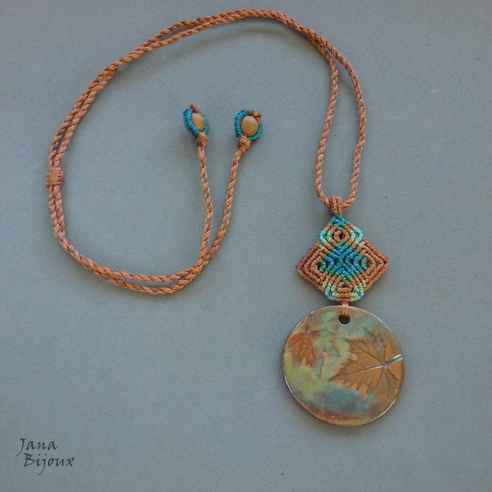 Colar com cerâmica e macramé em 6 cores.