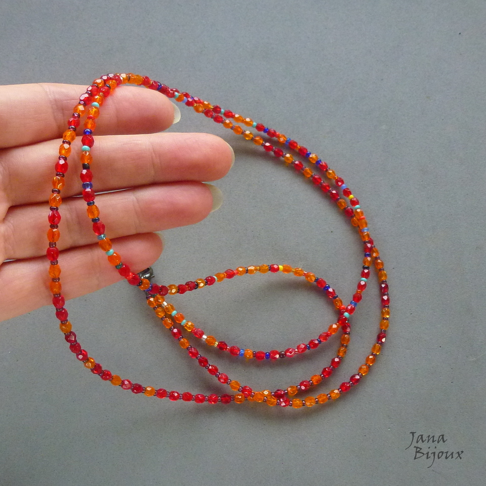 c1540 28/06/2021VENDIDOS ( Prodáno)Jana Bijoux Colar extra comprido de 110 cm, pode ser usado como curtos com duas voltas ou comprido. Cristal cores fortes, importado com mini miçangas no meio, acabamento preto R$ 47,00