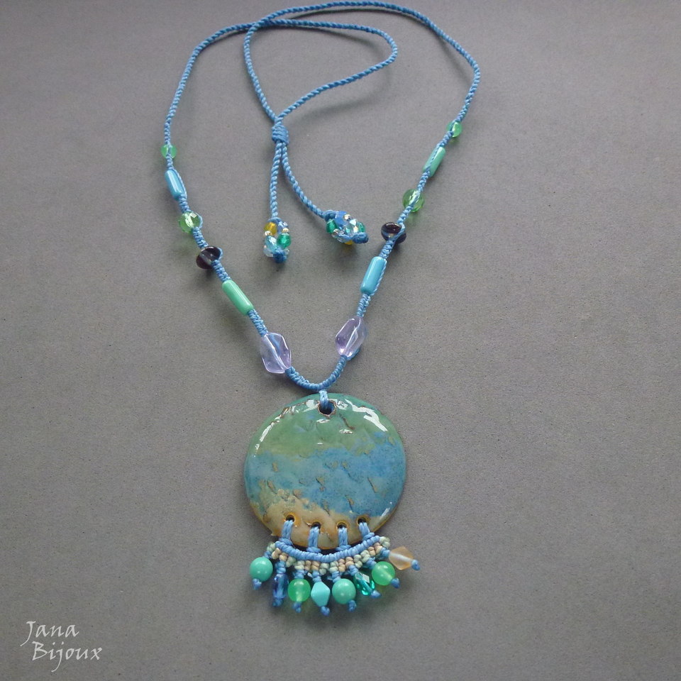Colar com medalhão de cerâmica da @luciane_schwarz , vidro importado + macramé delicado.