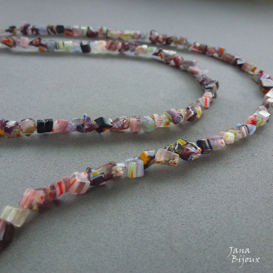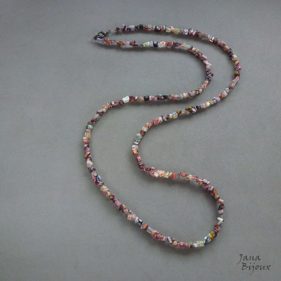 Colar comprido cm de cascalho de millefiori.