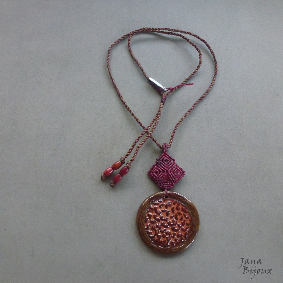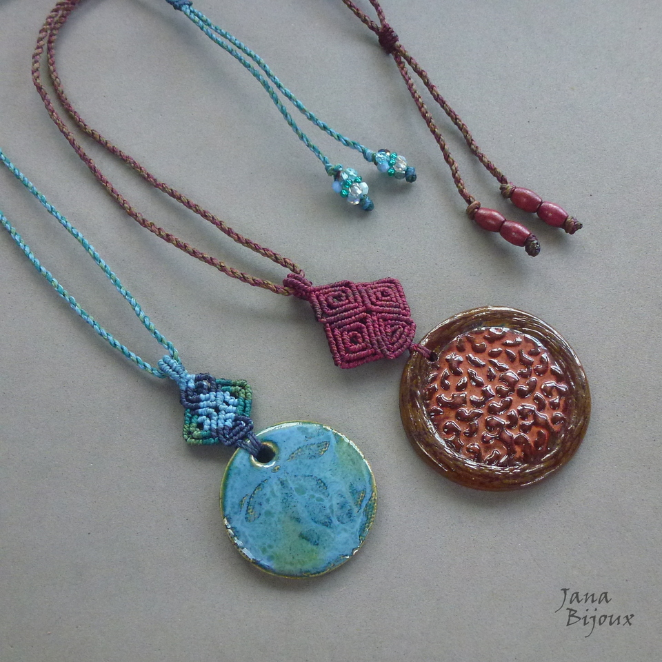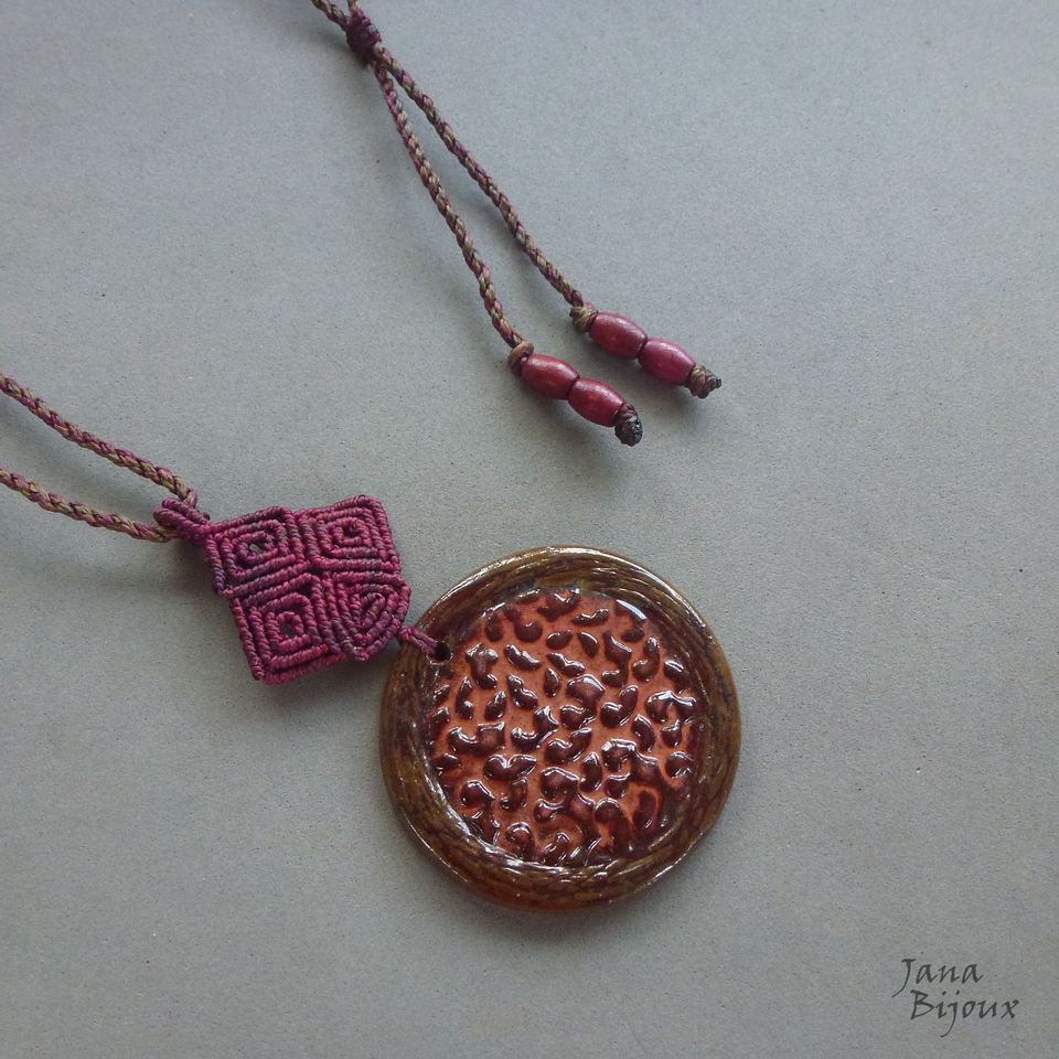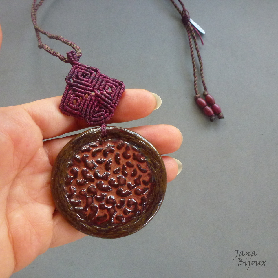 Colar com cerâmica e macramé.