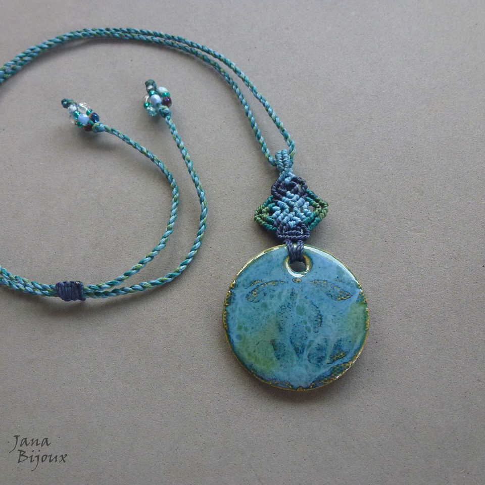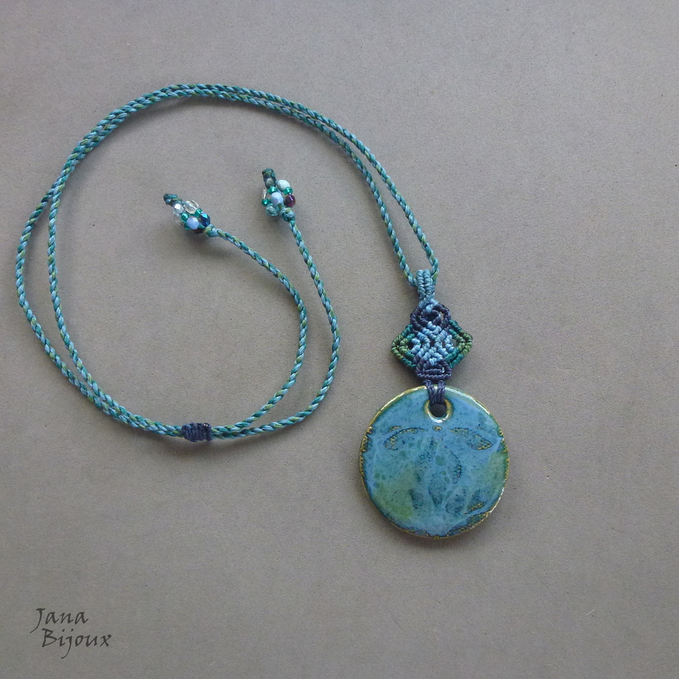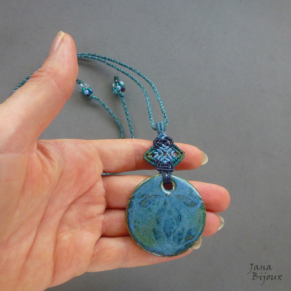 Cerâmica feita a mão pela @luciane_schwarz,  tem 4,5 cm,  com macramé em cima dela pingente mede 8 cm.  A cerâmica tem movimento livre no cordão .
