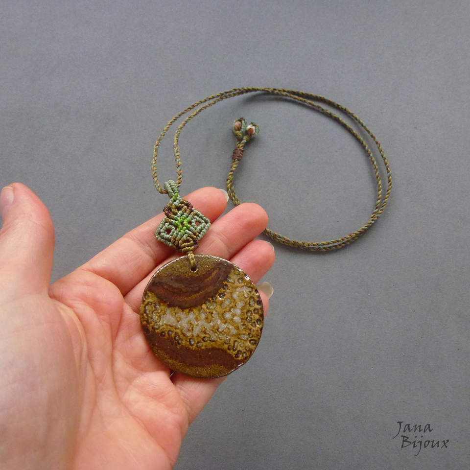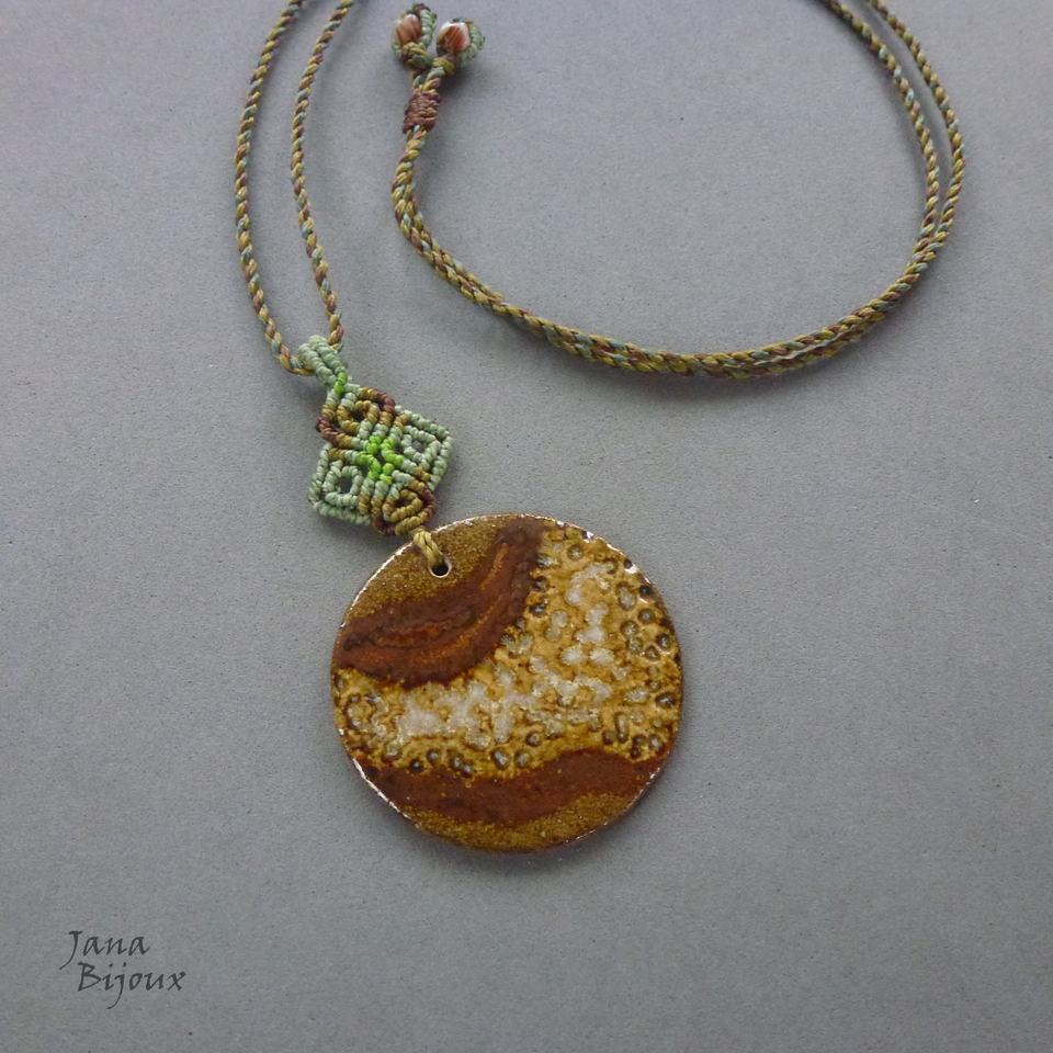 Colar com cerâmica e macramé em 5 tons.