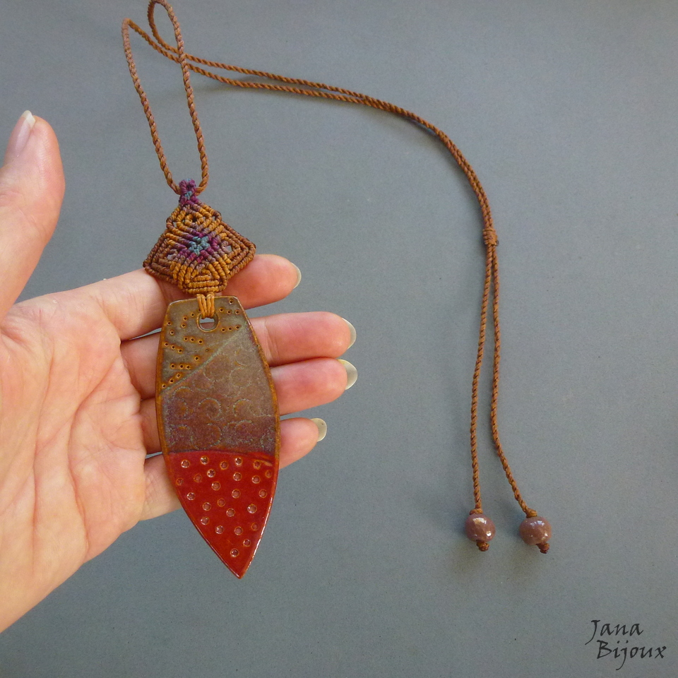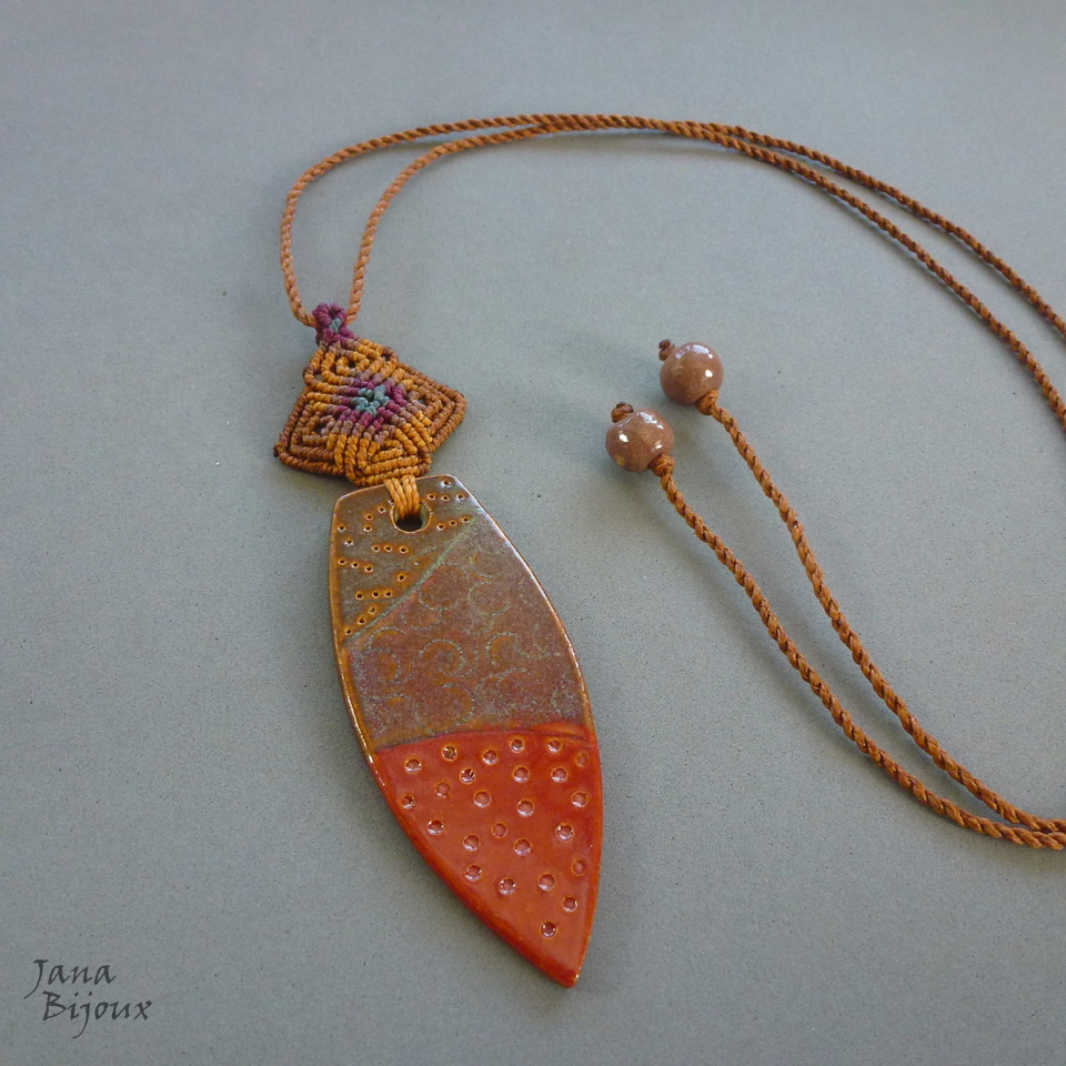 Cerâmica feita a mão pela @luciane_schwarz,  tem 8,3 cm x 3,5 cm,  com macramé em cima dela pingente mede 13 cm.  A cerâmica tem movimento livre no cordão .