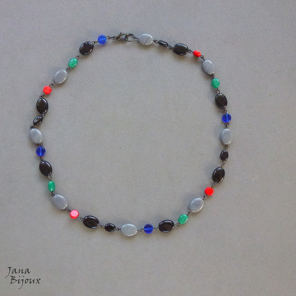 c1579 25/10/2021VENDIDOS ( Prodáno)Jana Bijoux Colar curto 47cm, de vidro importado e componentes pretos. R$ 33,00