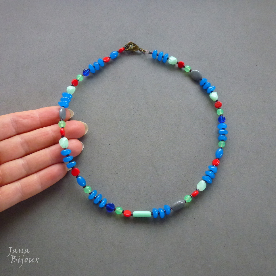 c1580 25/10/2021VENDIDOS ( Prodáno)Jana Bijoux Colar curto 46 cm de vidro importado, fecho maior 1,5 cm para look mais luxuoso e manuseio mais fácil, ouro velho. R$ 46,00