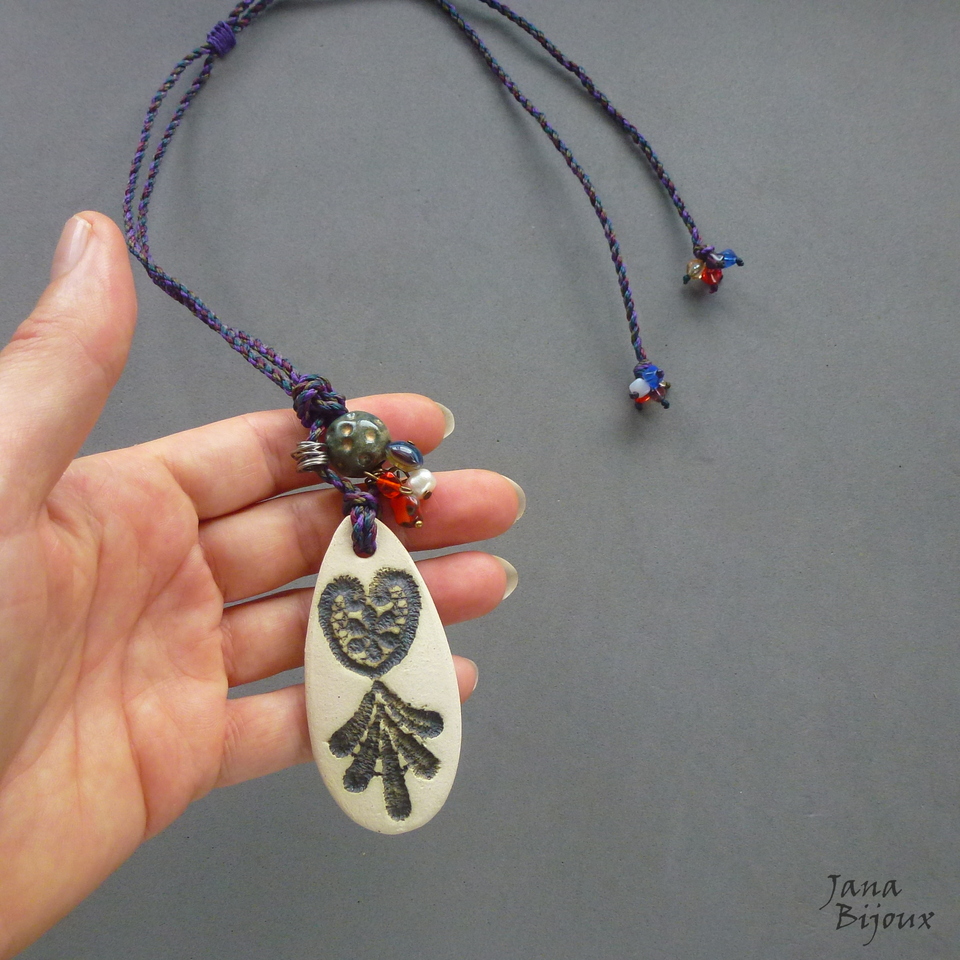 O cordão é tmb trabalho manual, é feito de 6 cores (roxo, marinho, berinjela, beterraba, verde super escuro, verde militar, mas junto não são berrantes, são até discretos, escuros) máx. de comprimento 82 cm, mas é ajustável, nas pontas vidro colorido .