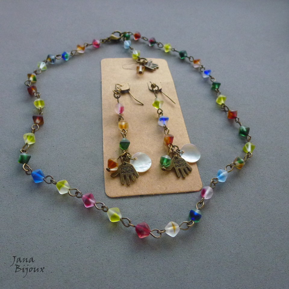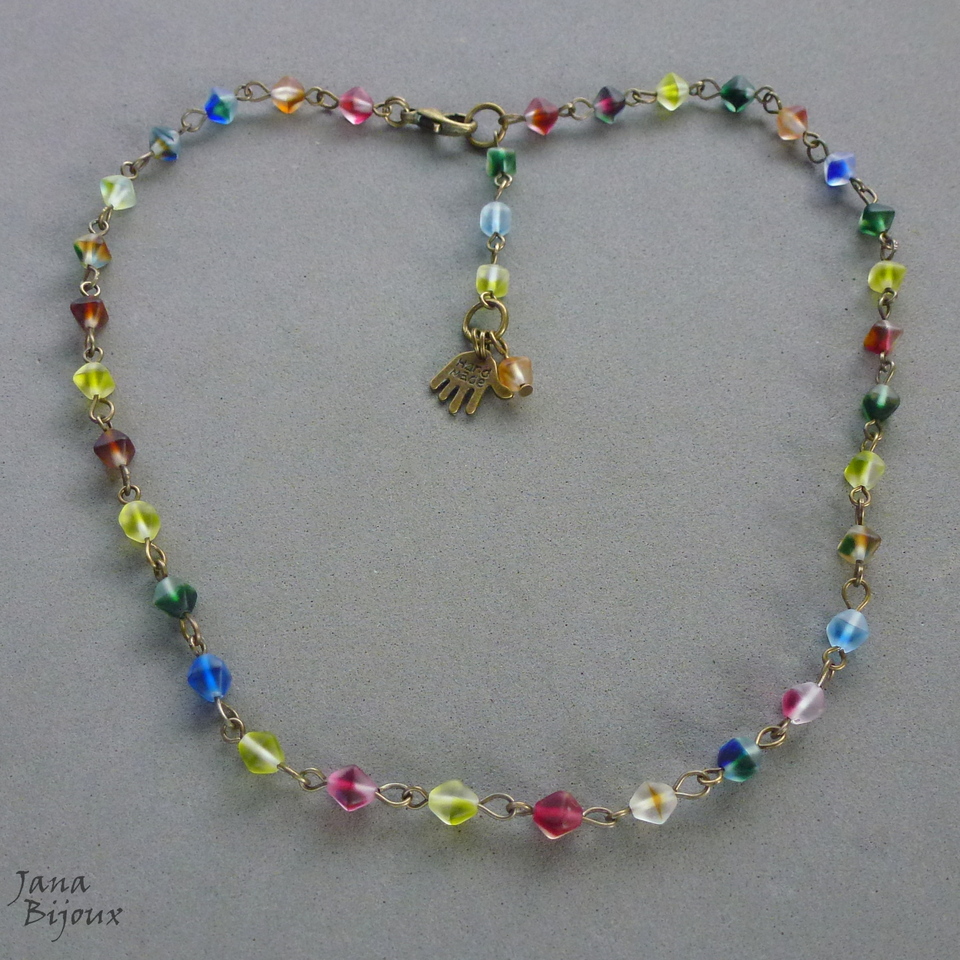 Colar curto 47,5 cm com opção de encurtar para 43 cm de vidro delicado, importado, fosco e componentes ouro velho. R$ 29,90