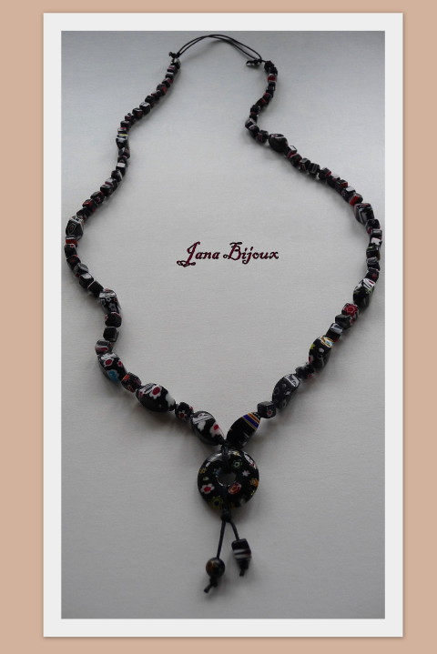 c399 29/04/2010VENDIDOS ( Prodáno)Jana Bijoux Colar comprido de milefiori, sem metal algum, com regulagem de comprimento e nós entre cada vidro. DLOUHÝ NÁHRDELNÍK BEZ JAKÉHOKOLIV KOVU Z MILEFIORI.