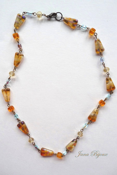 c459 09/08/2010VENDIDOS ( Prodáno)Jana Bijoux Colar curto de vidro furta-cor e arames em ouro envelhecido . KRÁTKÝ NÁHRDELNÍK SE SKLEM.